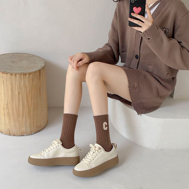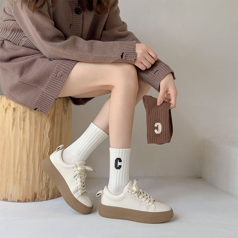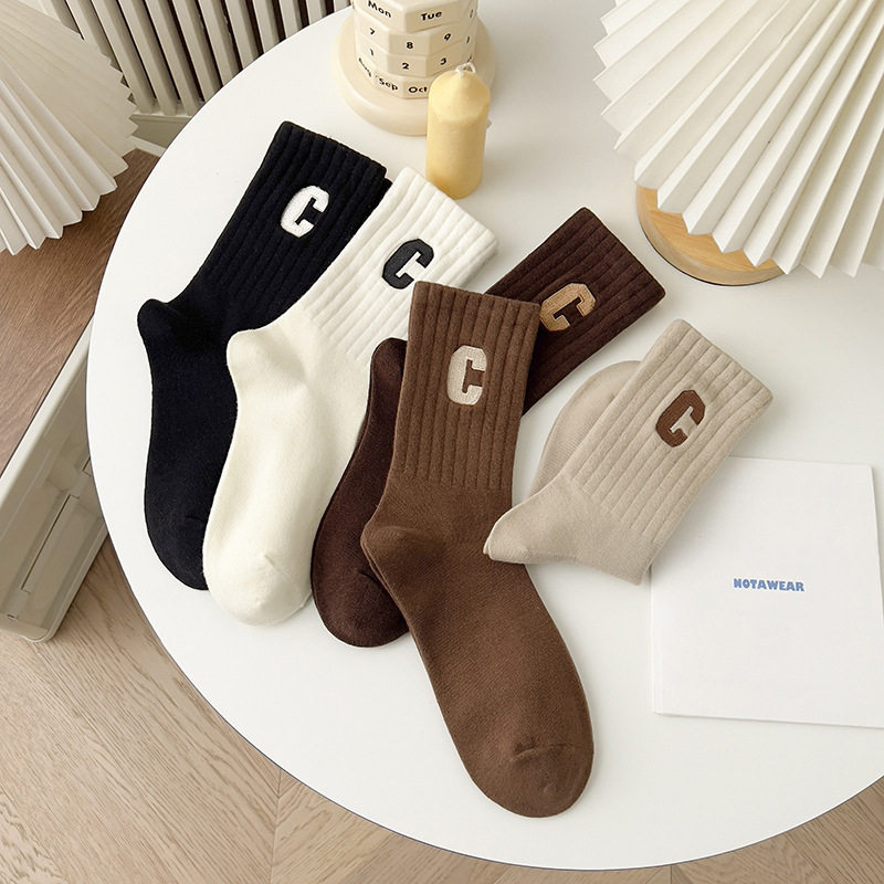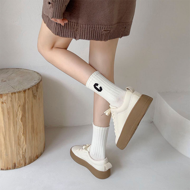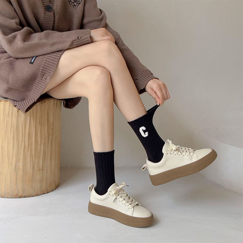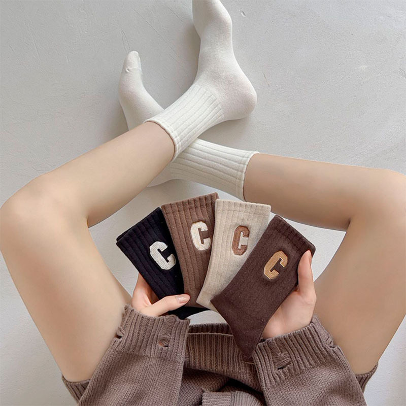 여성용 샤크 팬티스타킹, 트렌디한 여성용 스타킹, 흰색 문자가 있는 여성용 종아리 중간 양말, 여성용 두꺼운 니트 스타킹, Zhujie 양말스토어 가기