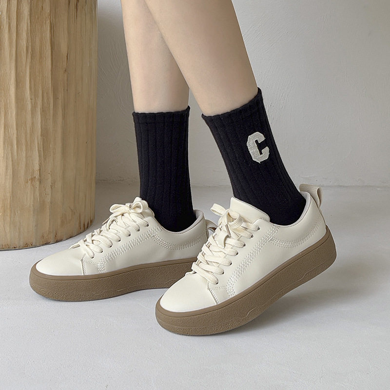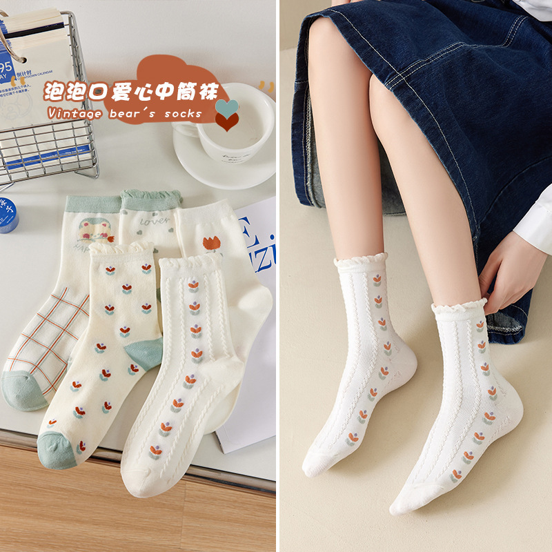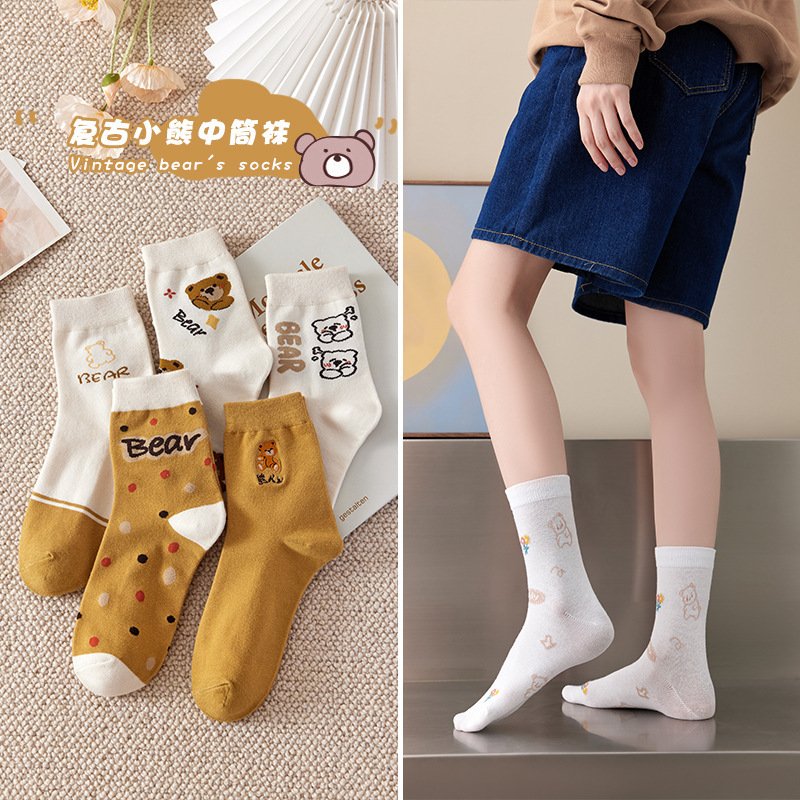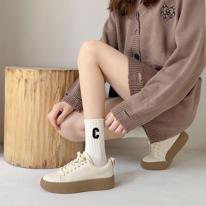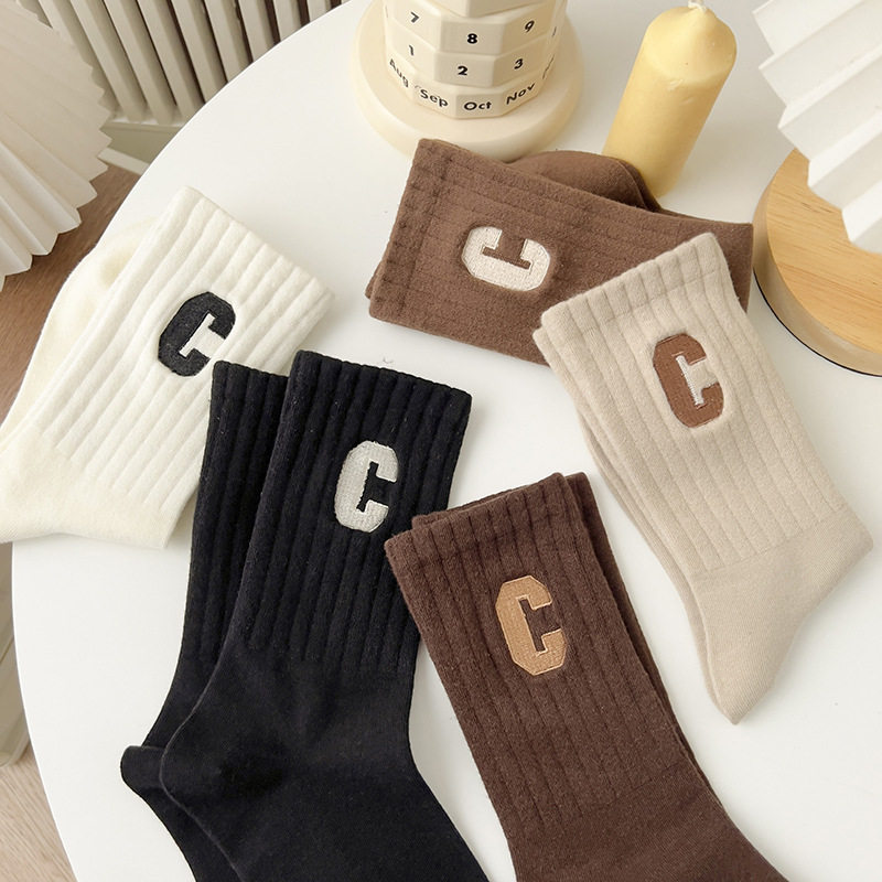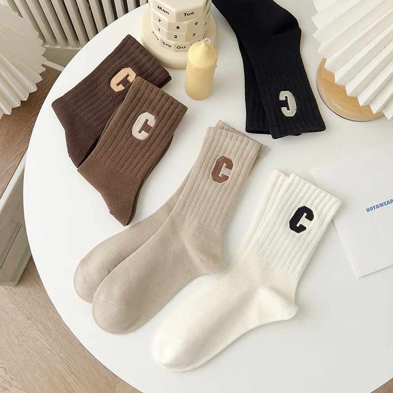 여성용 샤크 팬티스타킹, 트렌디한 여성용 스타킹, 흰색 문자가 있는 여성용 종아리 중간 양말, 여성용 두꺼운 니트 스타킹, Zhujie 양말스토어 가기