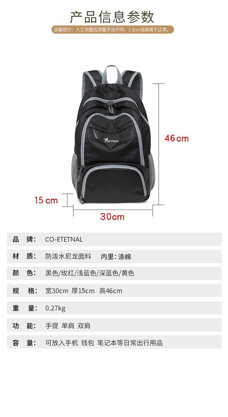 방수 어깨 남성용 초경량 접이식 여행 야외 배낭 휴대용 대용량 등산 학생 학교 가방 여성용 스킨 백스토어 가기