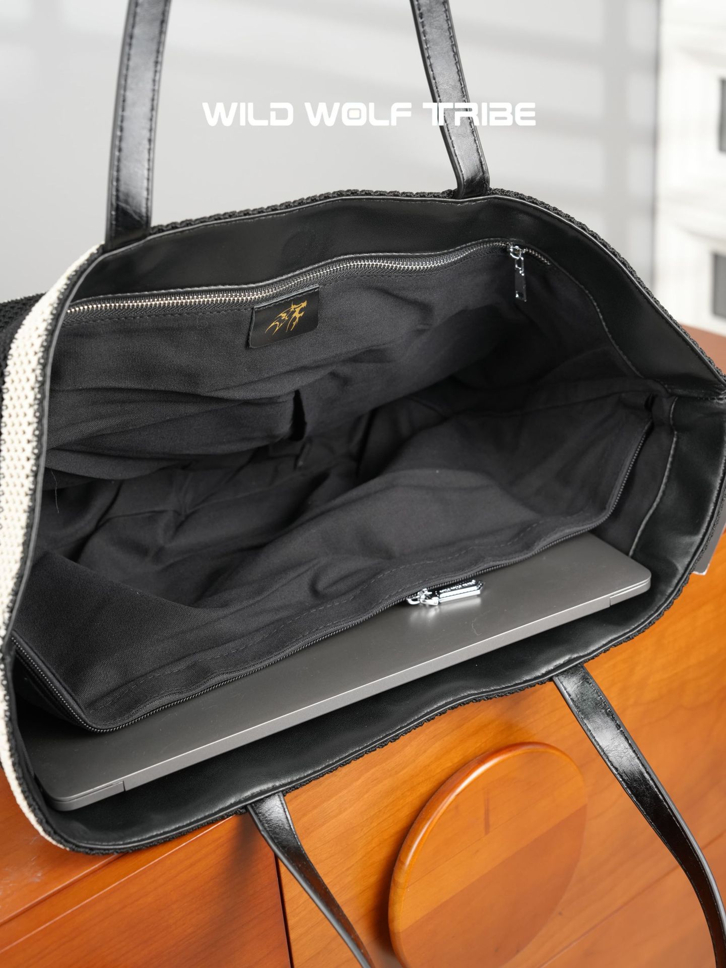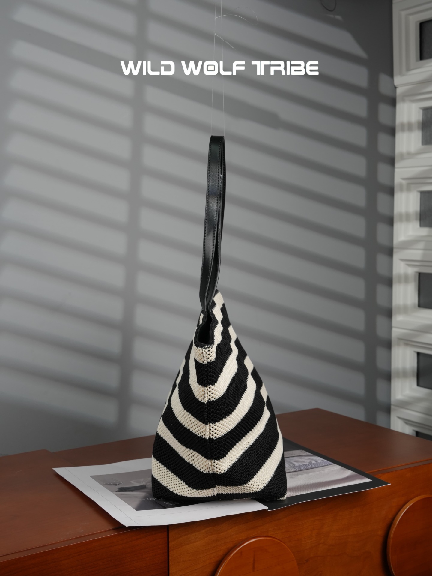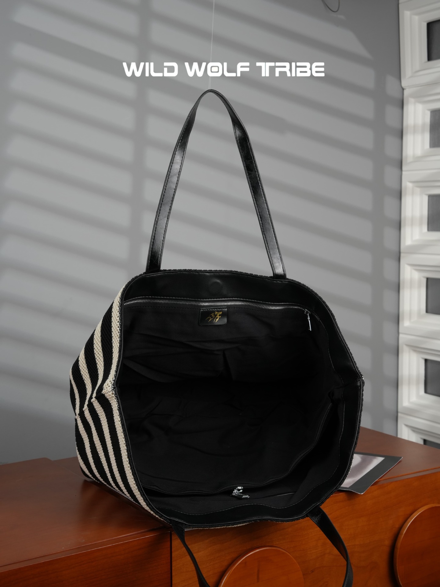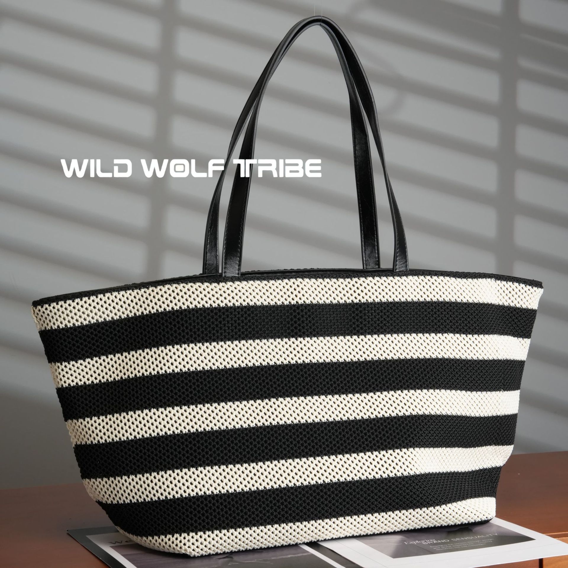고급 흑백 줄무늬 토트 백 짠 대용량 숄더백 여성용 게으른 스타일 경량 휴가 가방 쇼핑백