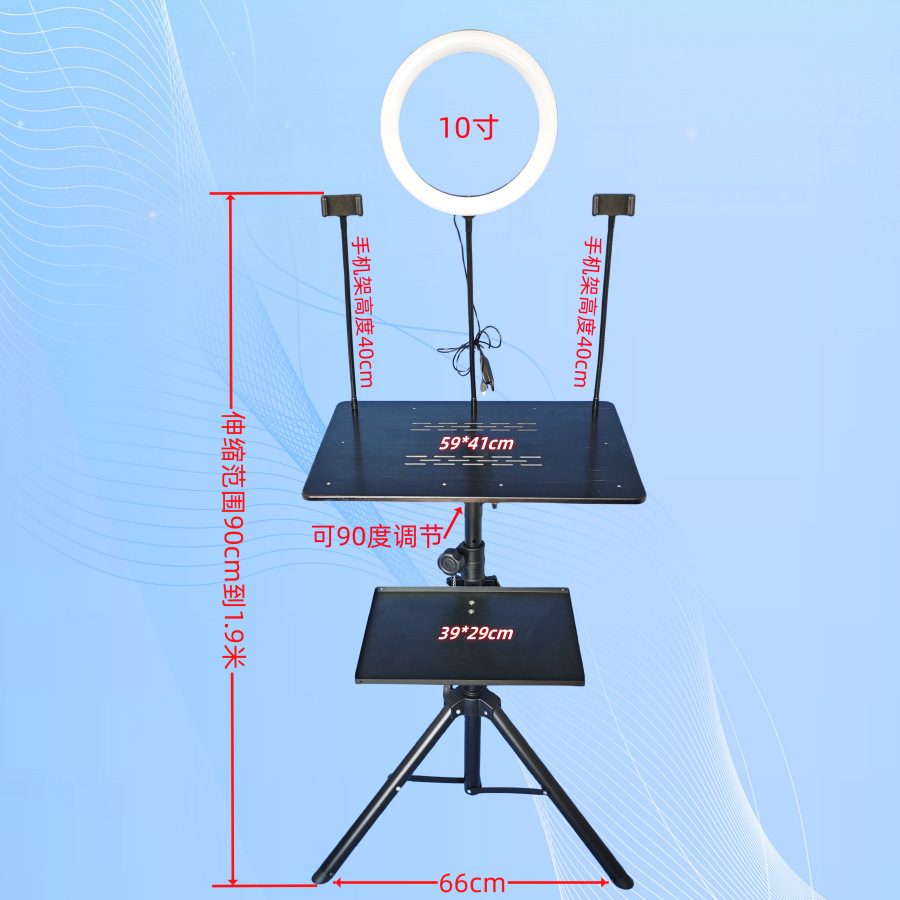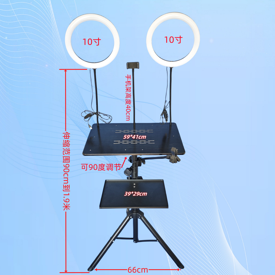 야외용 이중층 라이브 방송 스탠드 노트북 삼각대 사운드 카드 트레이 필 라이트 프로젝터 스탠드