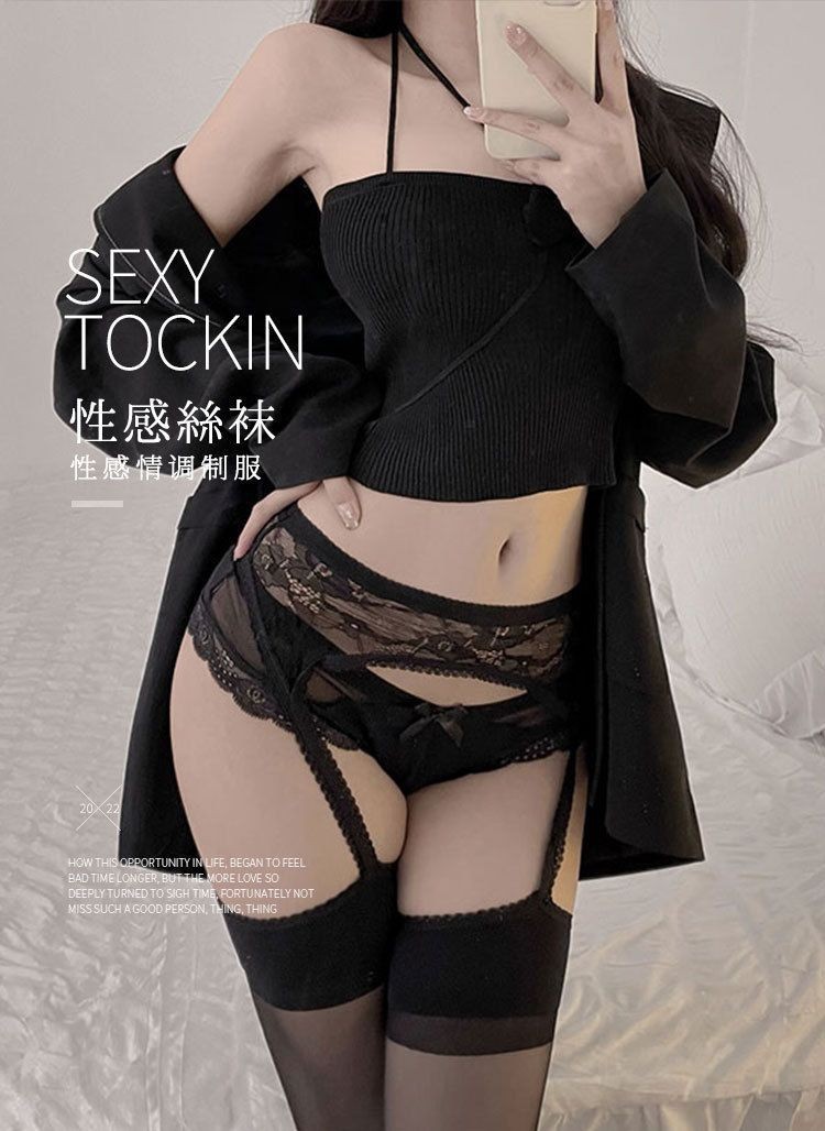 왕춘산 섹시한 원피스 스타일 블랙 스타킹 순수한 매력 스타일 화이트 레이스 테두리 하이탑 무릎 위 스타킹 섹시한 의상