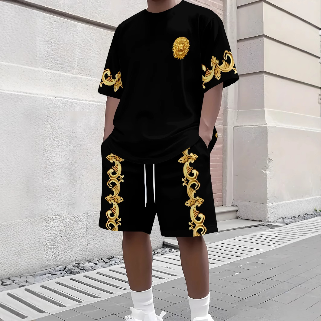 남성용 루즈한 얇은 반팔 반바지 투피스 세트와 청소년 여름 플러스 사이즈 티셔츠 스포츠 슈트 Mingshi스토어 가기