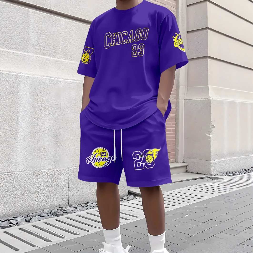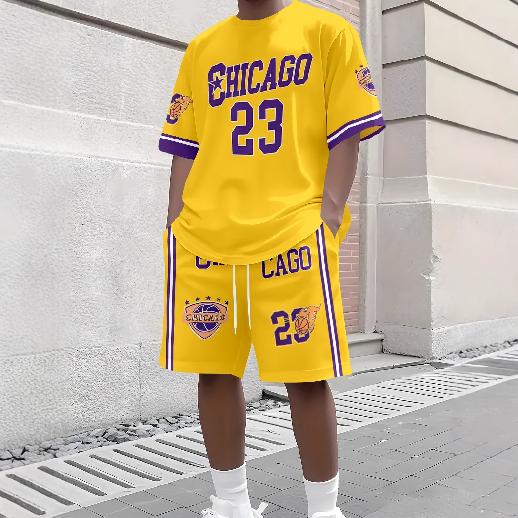 남성용 루즈한 얇은 반팔 반바지 투피스 세트와 청소년 여름 플러스 사이즈 티셔츠 스포츠 슈트 Mingshi