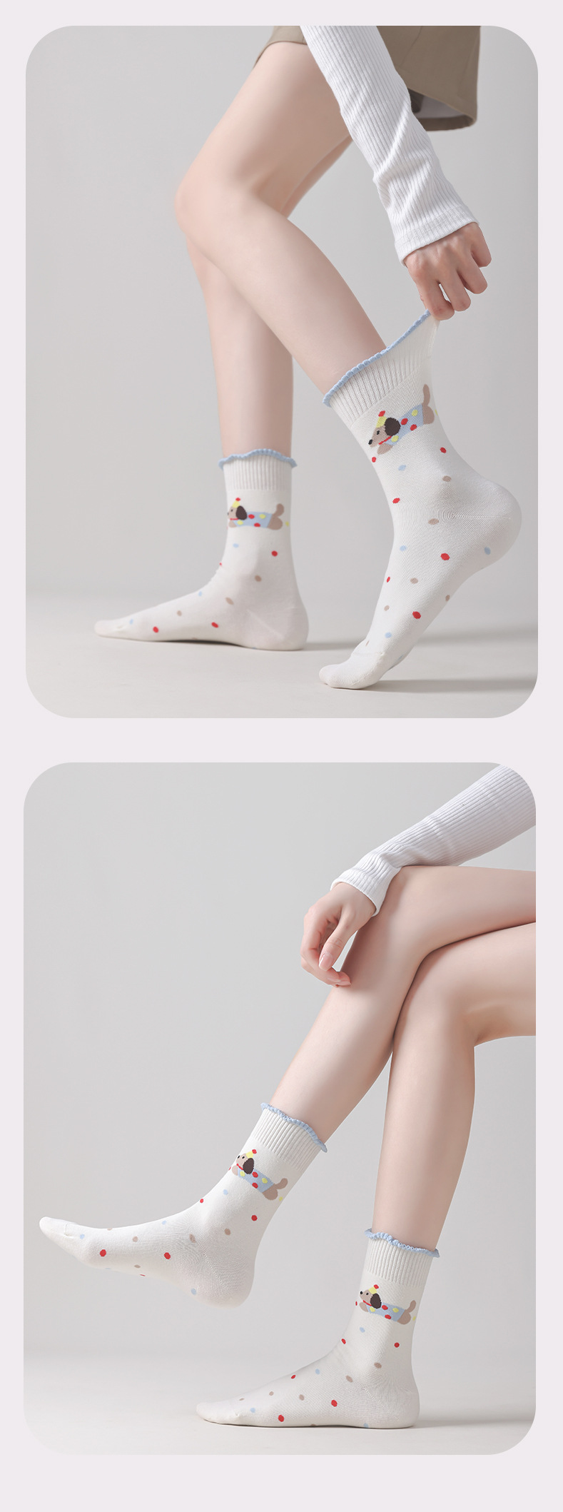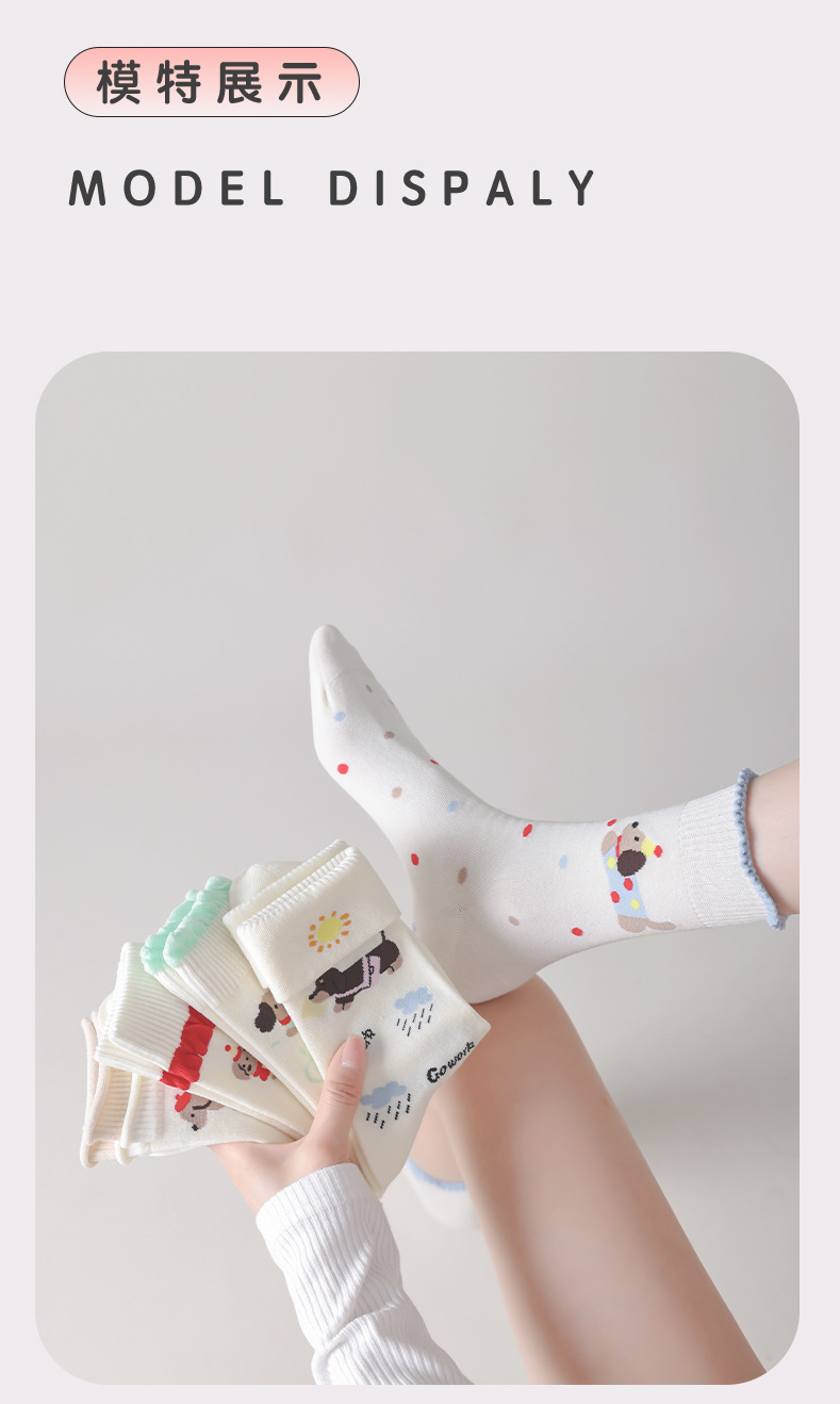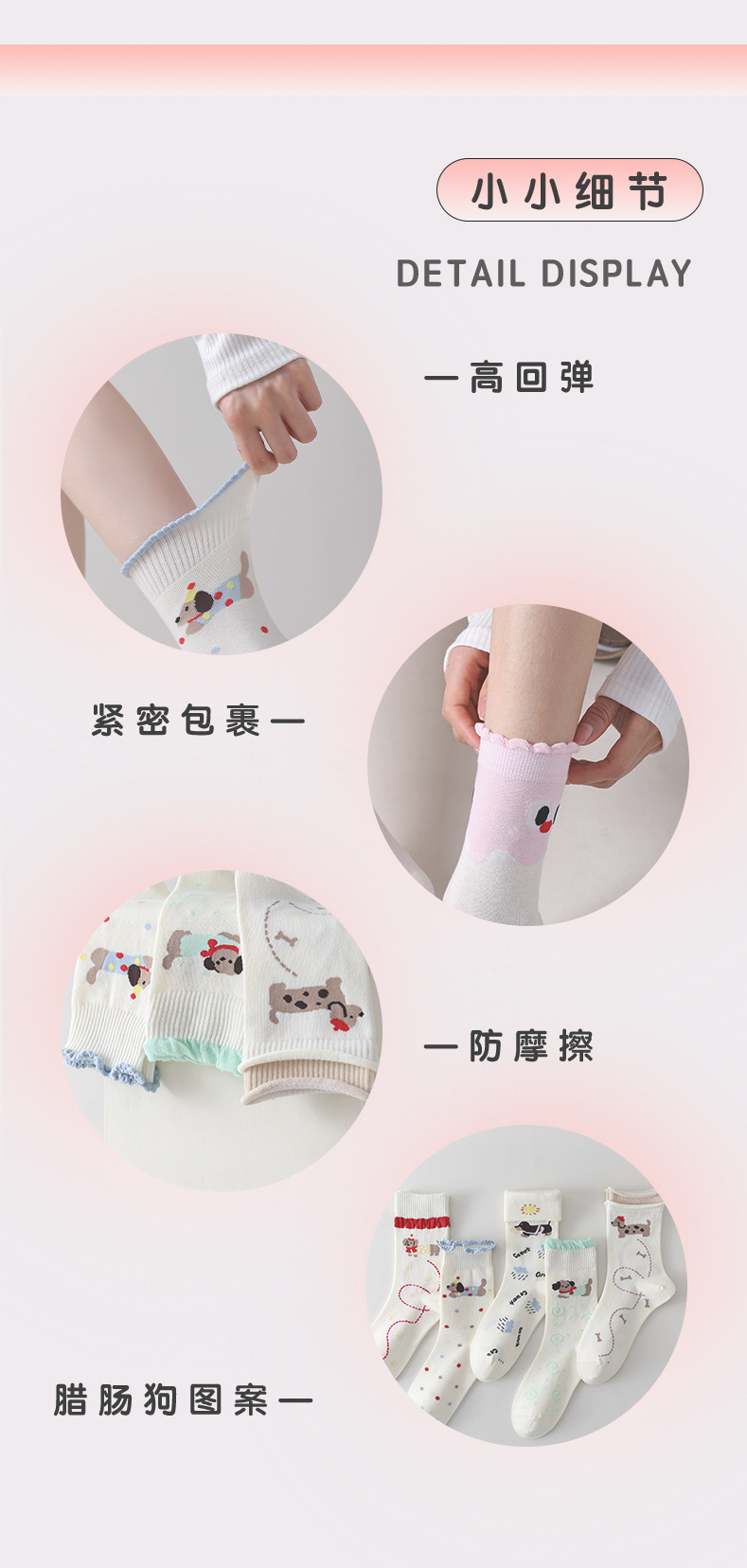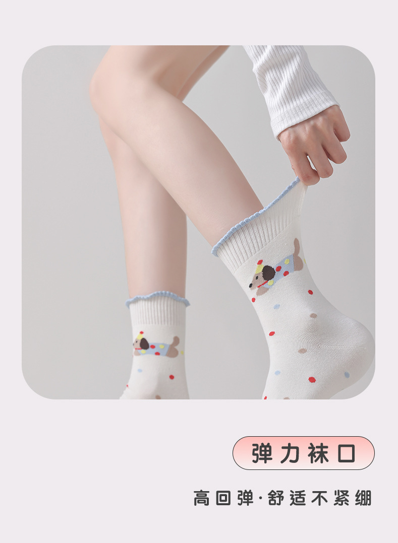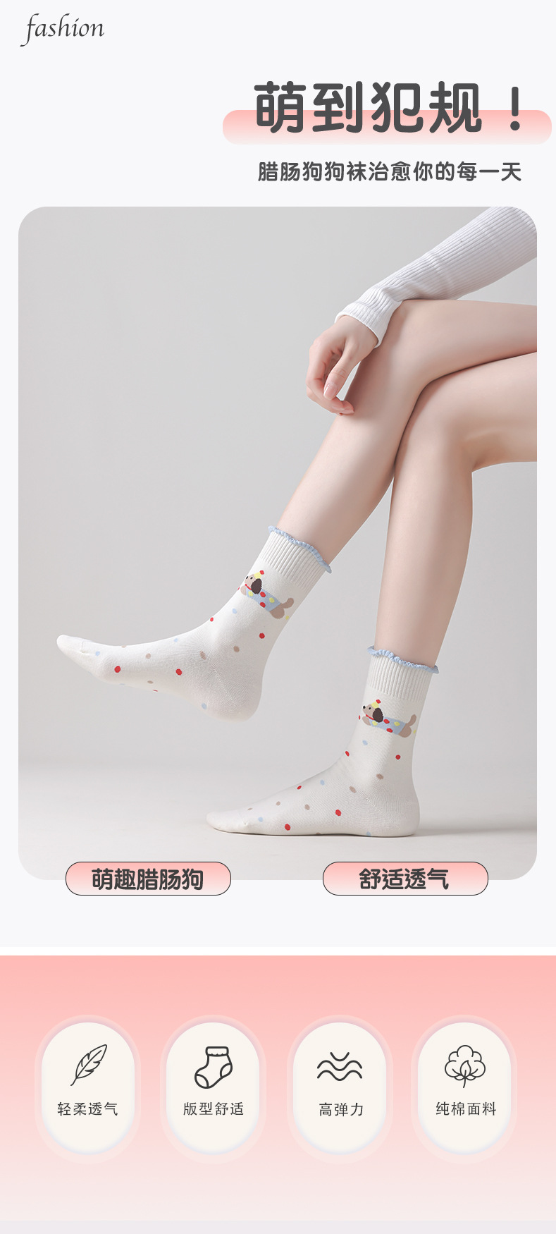 여성용 양말 25 신상 가을 겨울 만화 닥스훈트 강아지 여성용 중목 양말 귀여운 레이스 여성용 면 양말 중목 양말스토어 가기