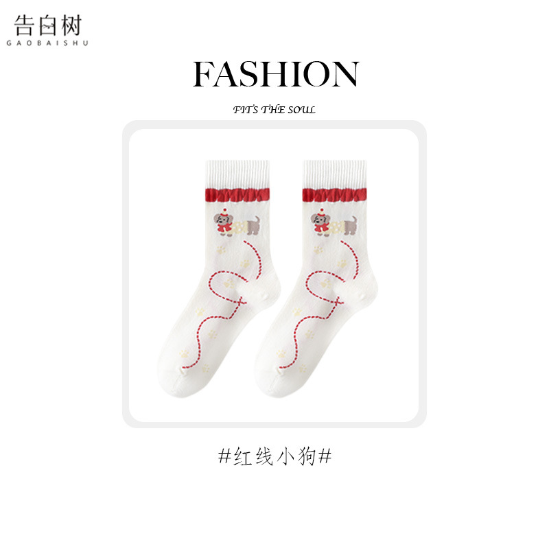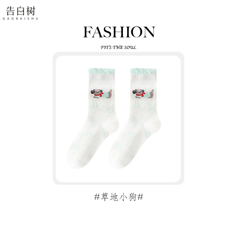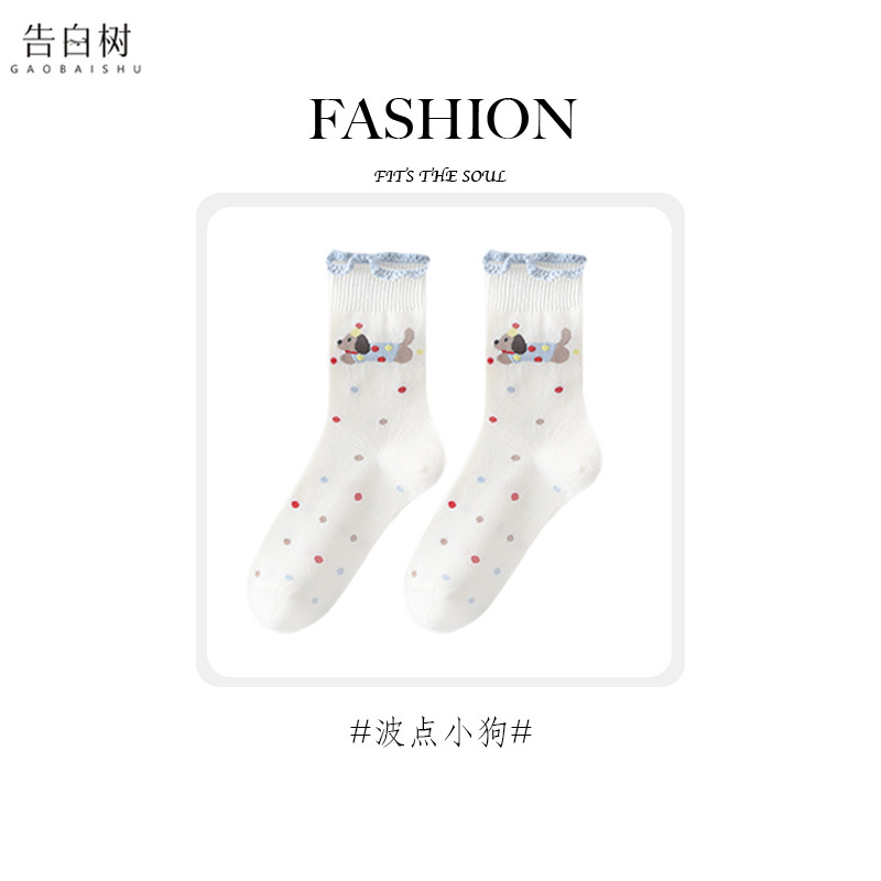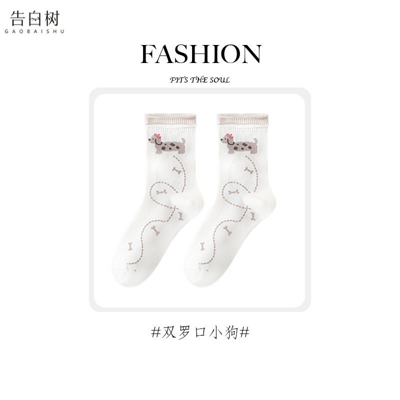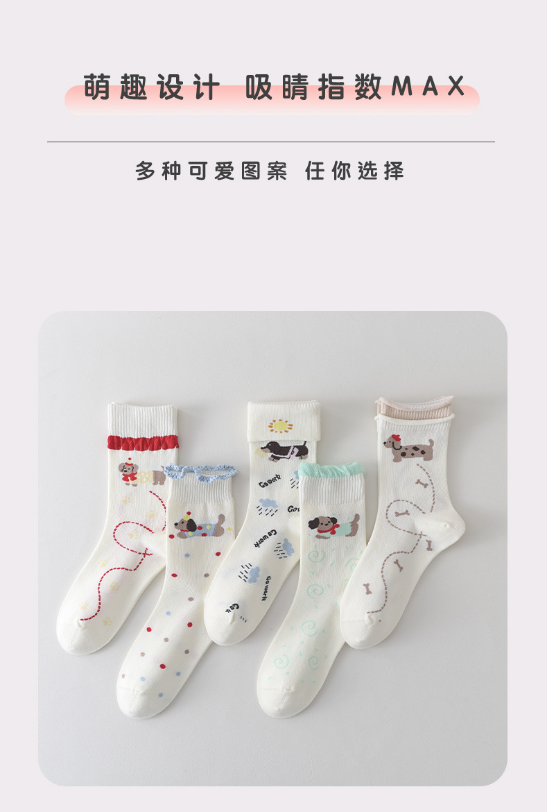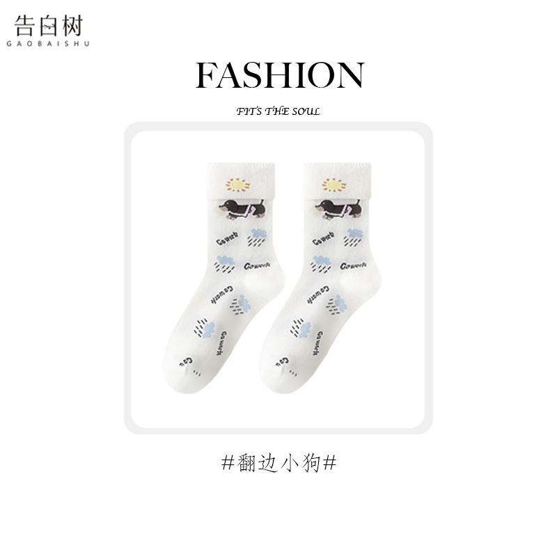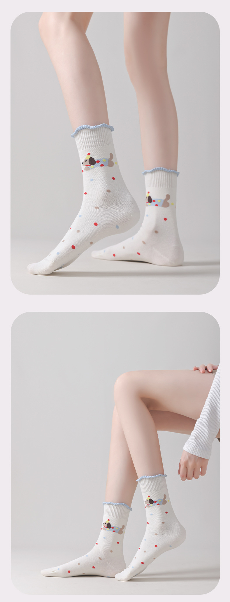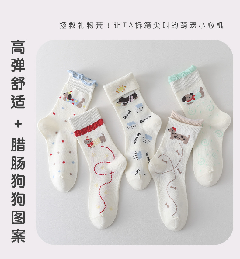 여성용 양말 25 신상 가을 겨울 만화 닥스훈트 강아지 여성용 중목 양말 귀여운 레이스 여성용 면 양말 중목 양말스토어 가기