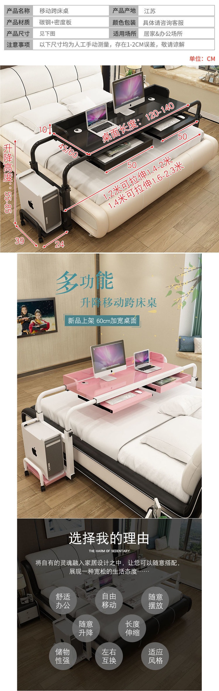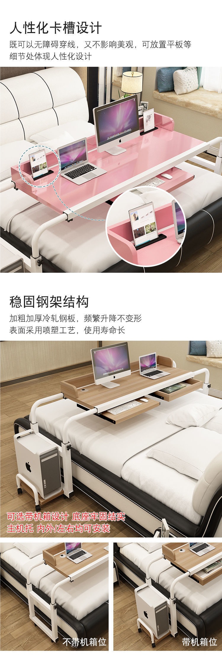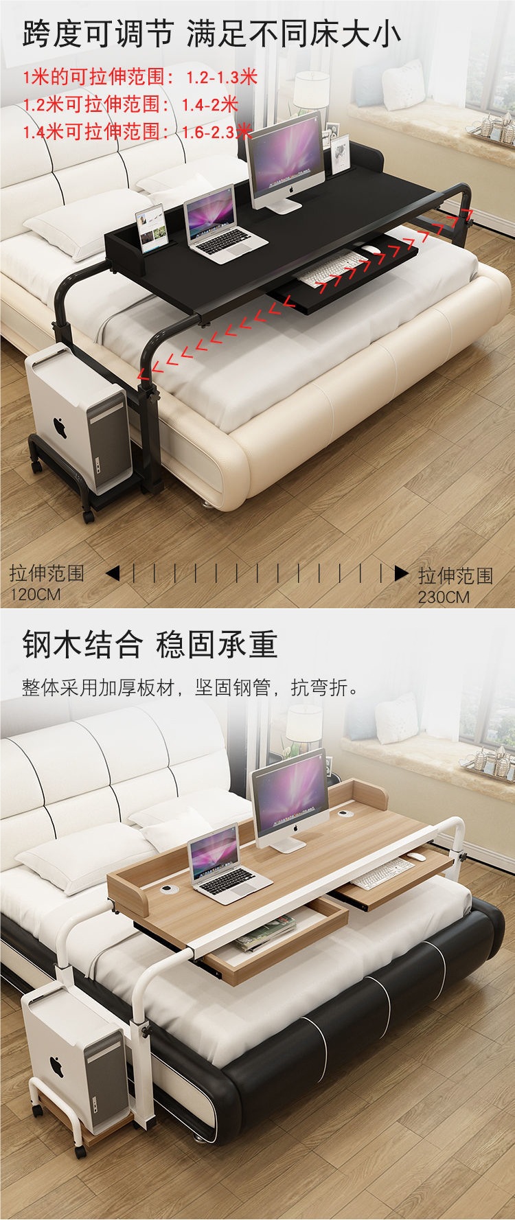 크로스 침대 테이블 더블 텔레스코픽 이동식 리프팅 노트북 데스크탑 컴퓨터 테이블 홈 게으른 침대 간호 병원 침대 테이블스토어 가기