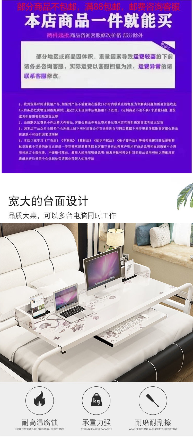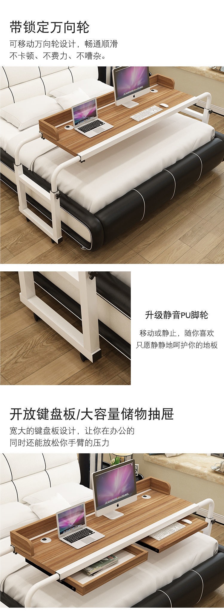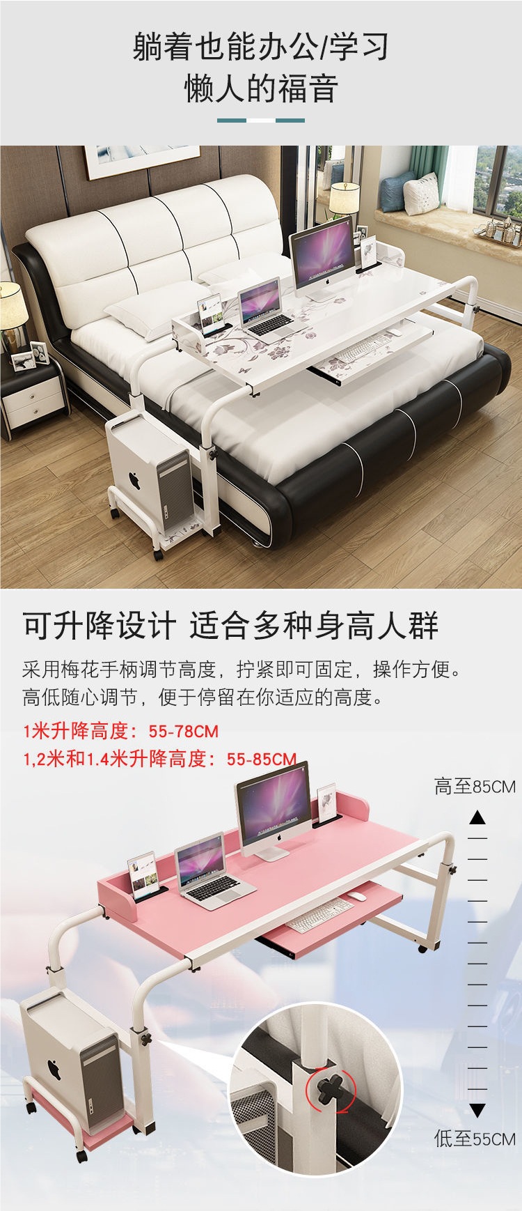 크로스 침대 테이블 더블 텔레스코픽 이동식 리프팅 노트북 데스크탑 컴퓨터 테이블 홈 게으른 침대 간호 병원 침대 테이블스토어 가기
