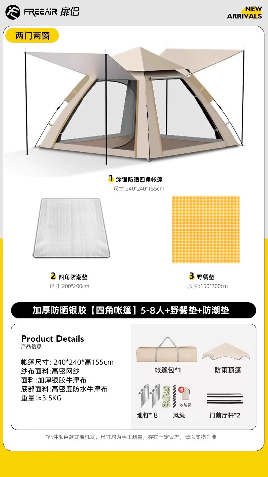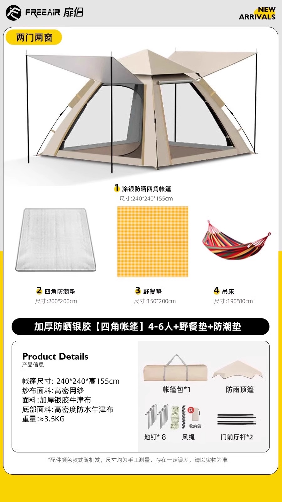 야외 텐트 캠핑 휴대용 접이식 빠른 개방 원클릭 개폐 완전 자동 실내 공원 부모-자식 캠핑 피크닉