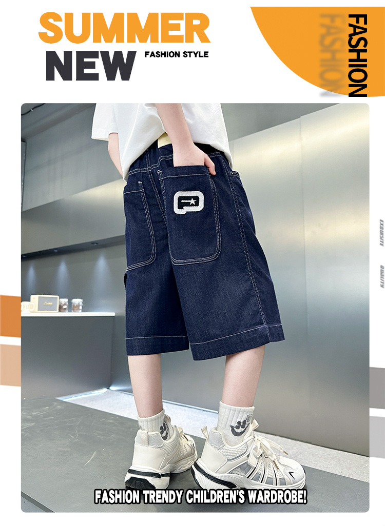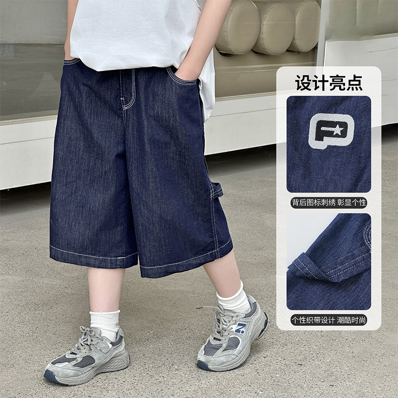 아동복 소년 바지 느슨한 반바지 여름 얇은 아동 청바지 소년 5부 바지 2025 새로운 유행 바지스토어 가기