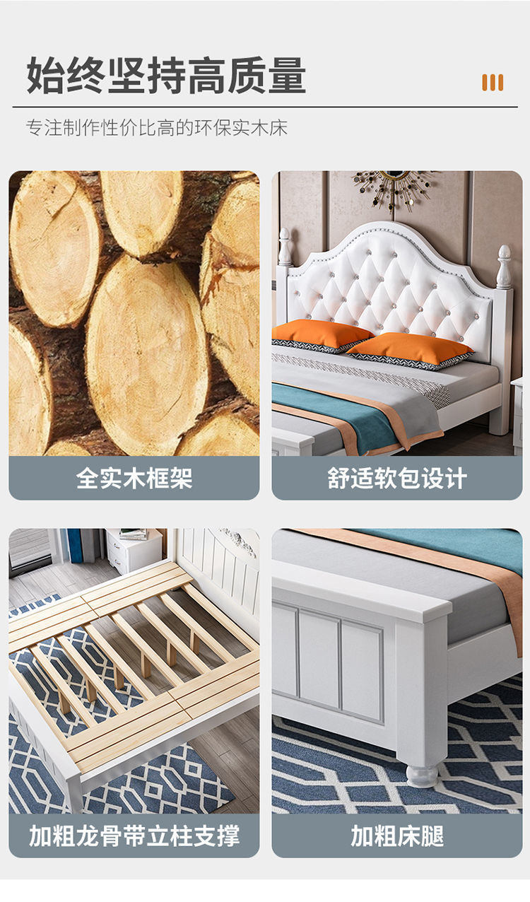원목침대 심플 1.5m 더블침대 1.2m 경제적인 임대실 1.8 마스터룸 공주 싱글침대 공장