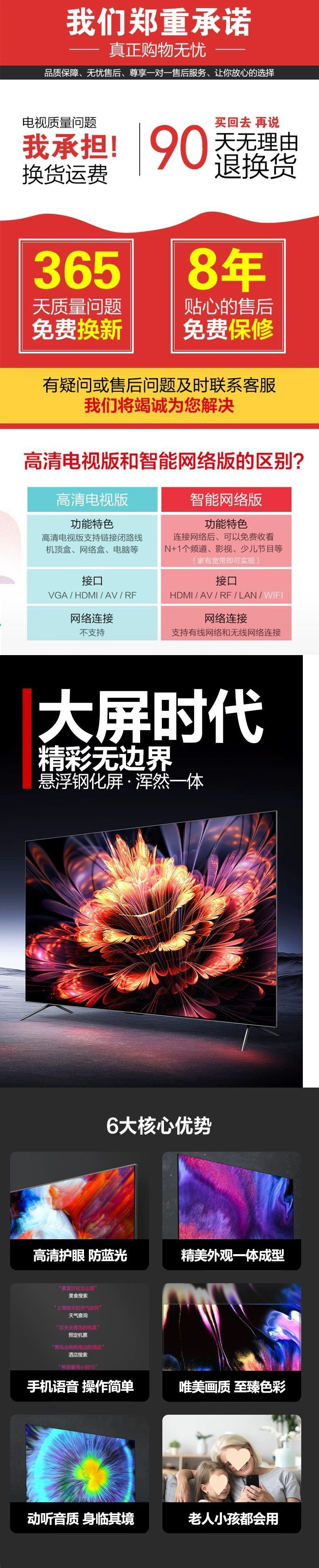 Wang TV LCD 55인치 50인치 43인치 60인치 65inch 32inch 스마트 와이파이 네트워크 가정용 전기 무료 배송 브랜드스토어 가기