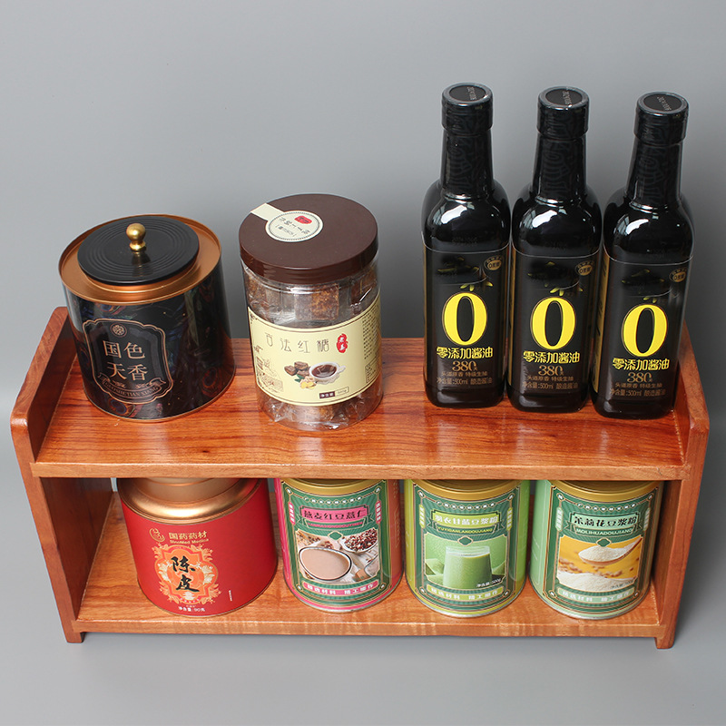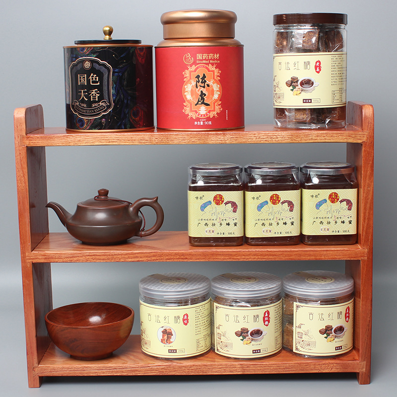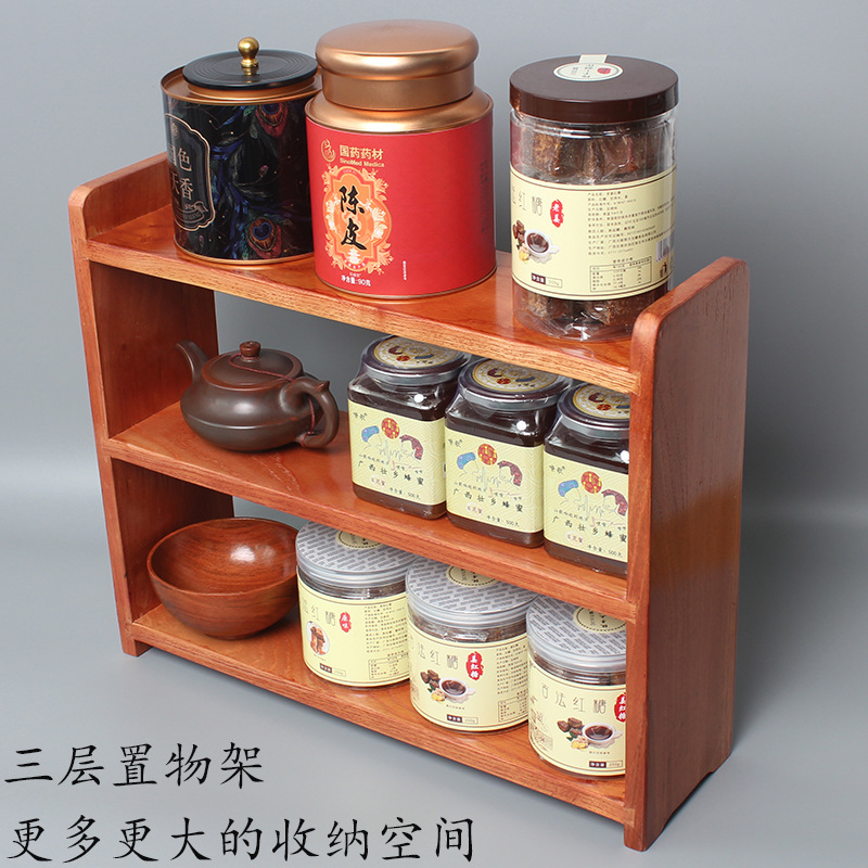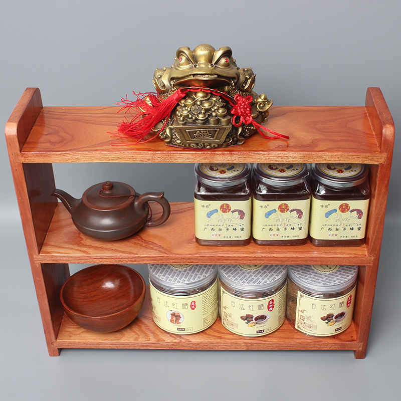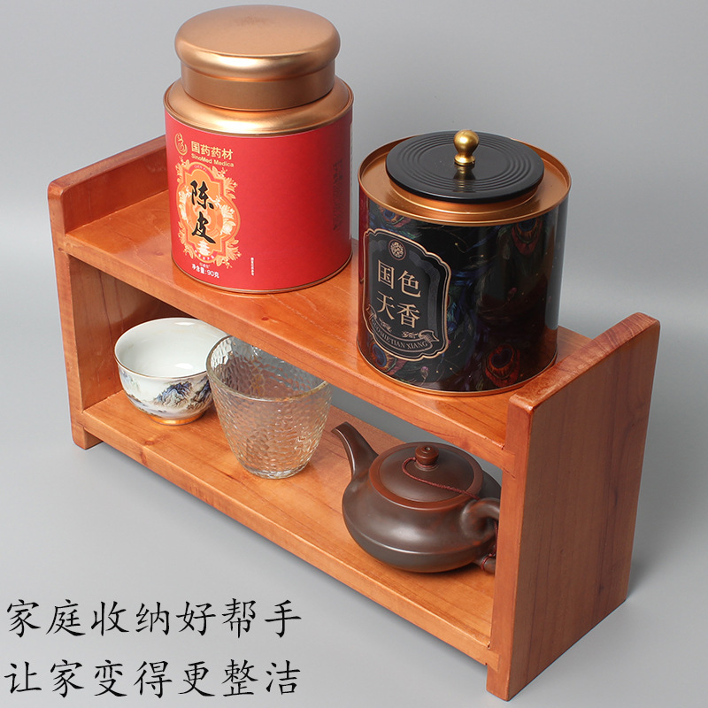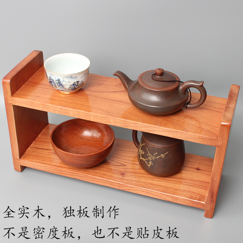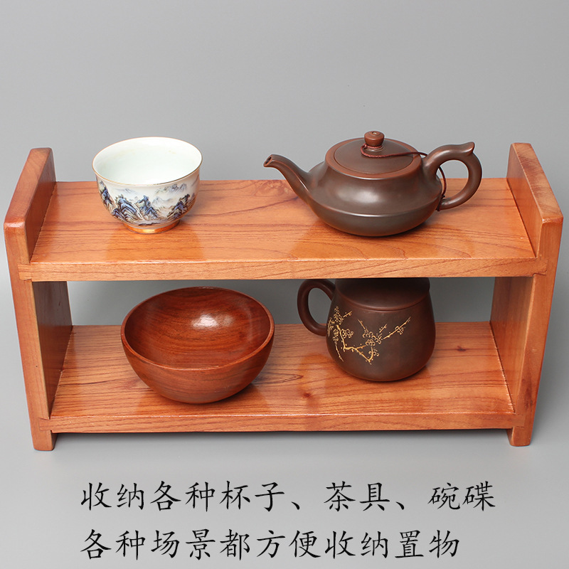 나무 보관 랙 다층 데스크탑 디스플레이 랙 차 세트 찻잔 보관 랙 주방 벽걸이 장식품 보관 랙
