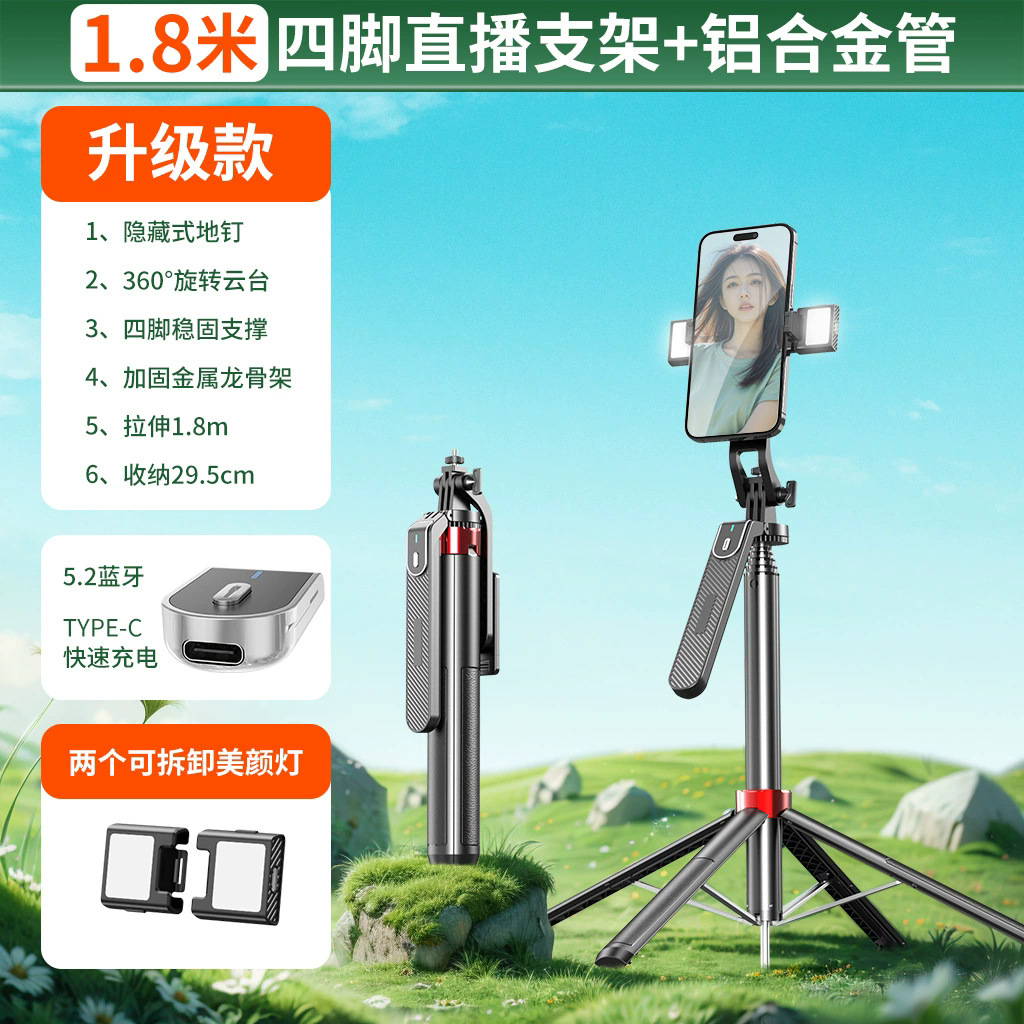 흔들림 방지 개폐식 라이브 스트리밍 휴대폰 셀카봉(스터드 안정 장치 포함) 사진 촬영용 블루투스 셀카봉 P185-N 모델