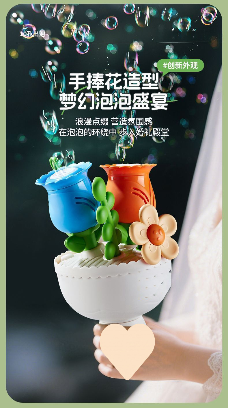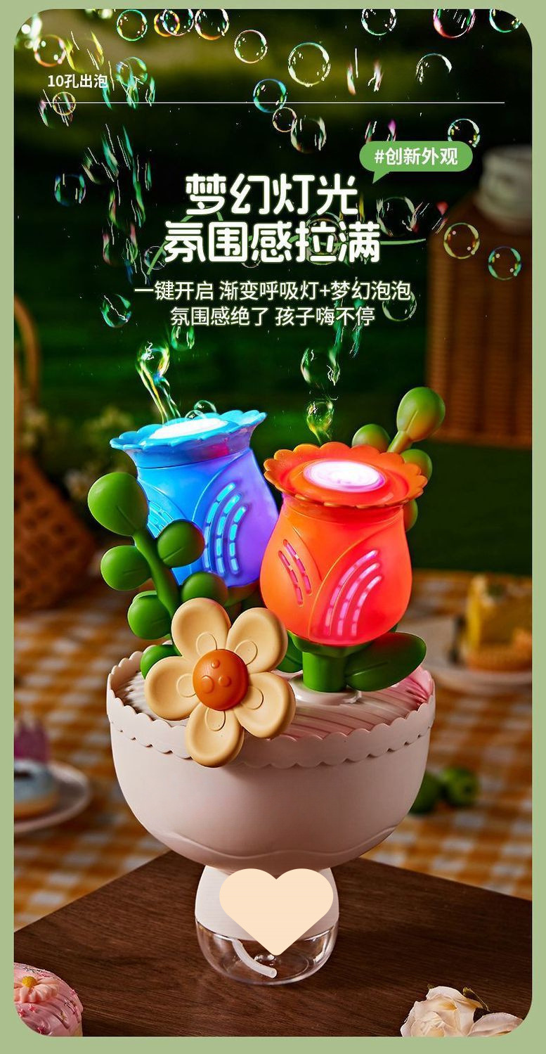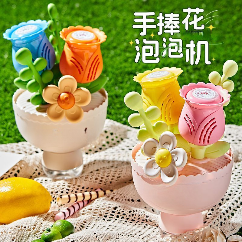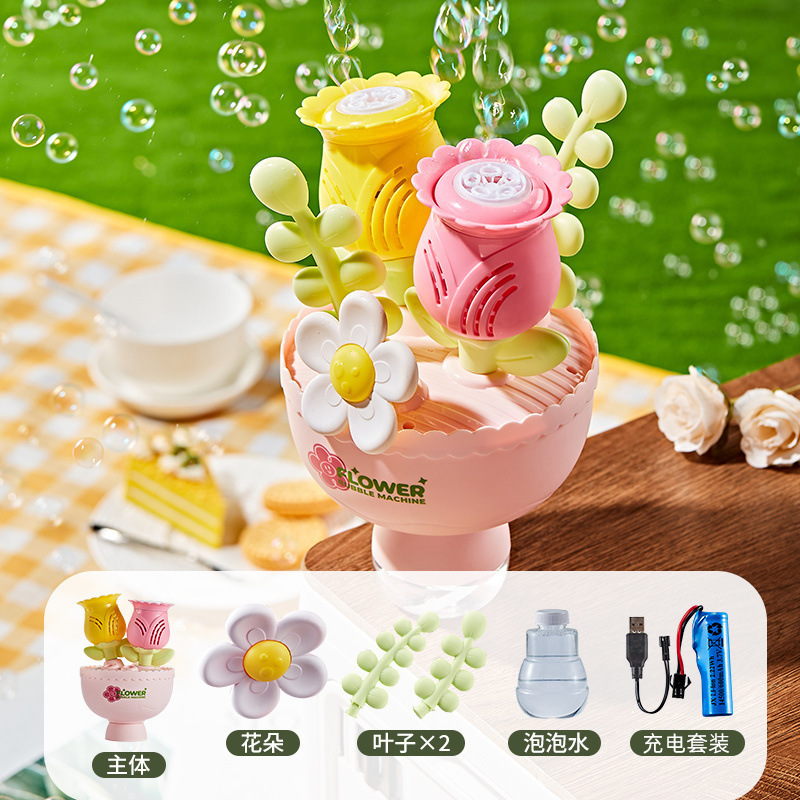 꽃다발 버블 머신 전기 완전 자동 버블 머신 소년과 소녀를위한 조명 어린이 장난감 A5