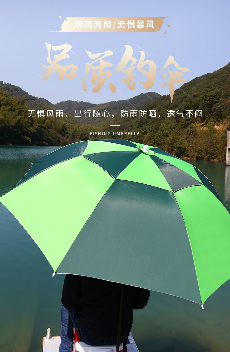 범용 비 또는 빛을 위한 이중층 낚시 우산, 두꺼운 자외선 차단 및 폭우 방지, 야외 낚시를 위한 특수 낚시 장비, 대형 낚시 우산스토어 가기