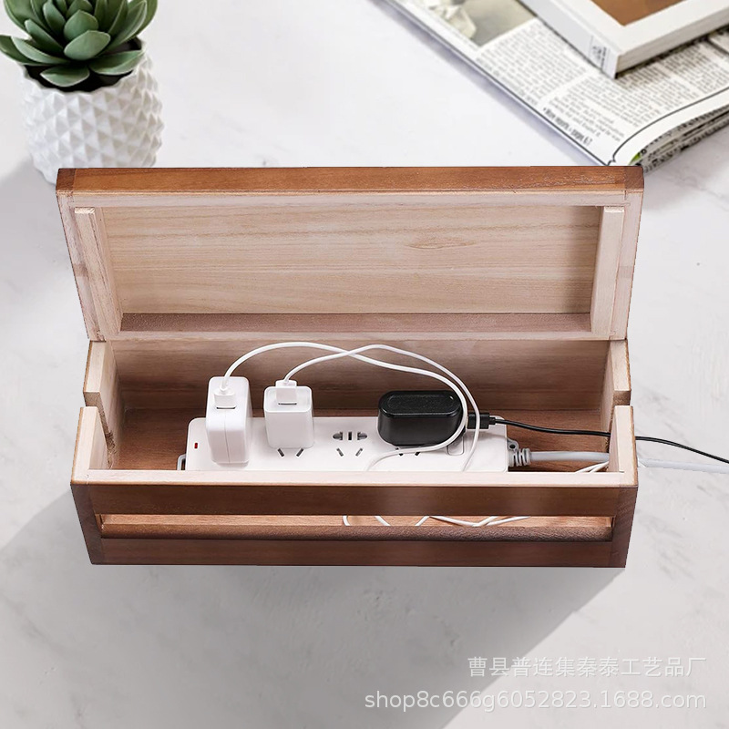 나무 플러그인 스트립 보관함 연장 케이블 케이블 관리자 데스크탑 홈 오피스 라우터 정리 브래킷스토어 가기