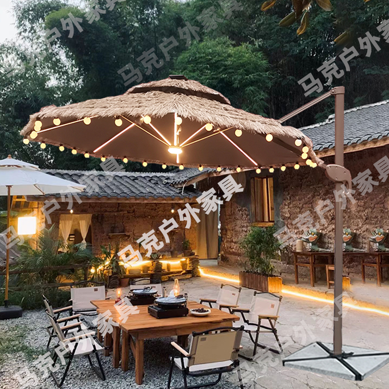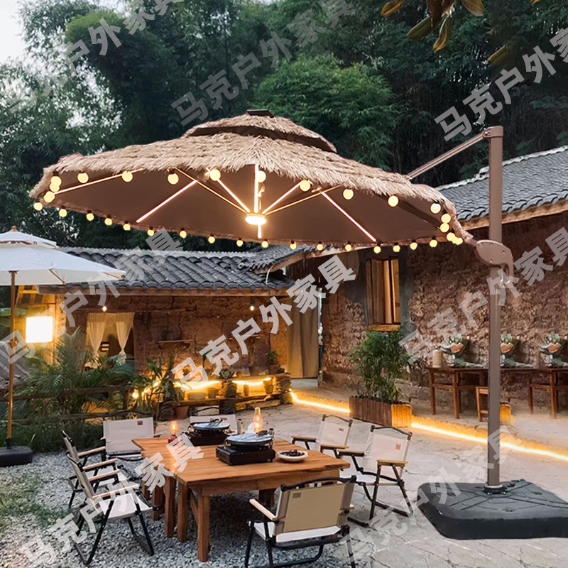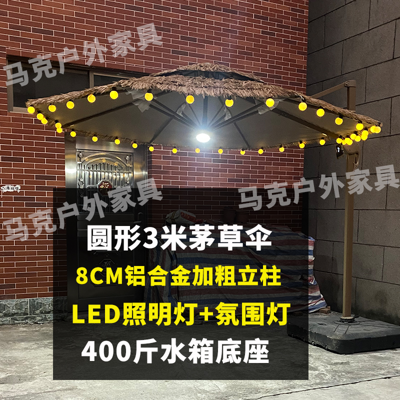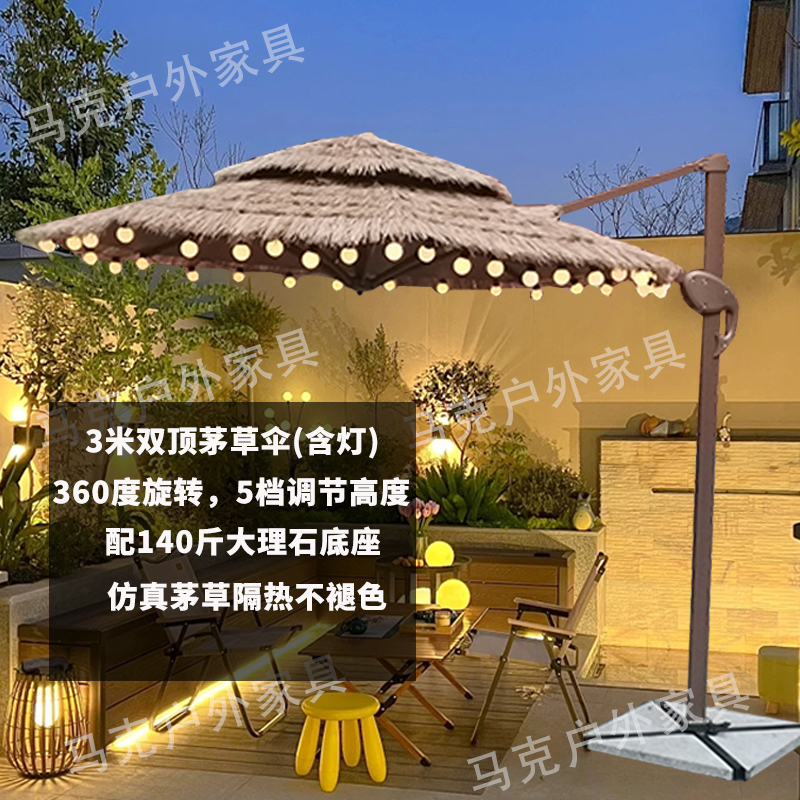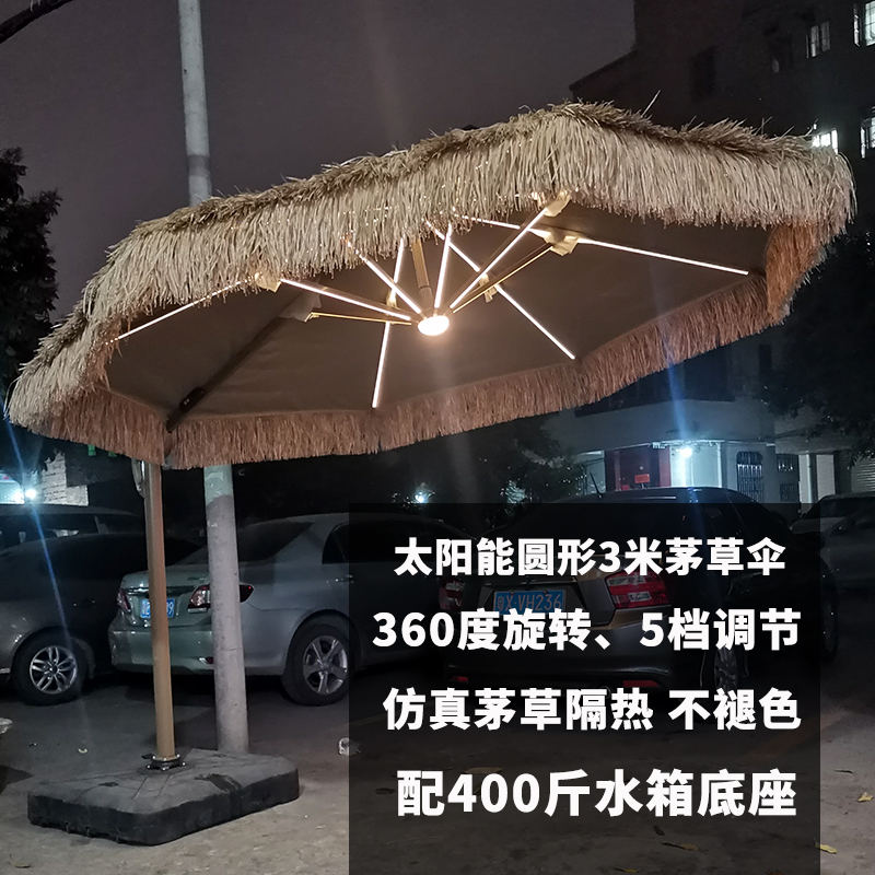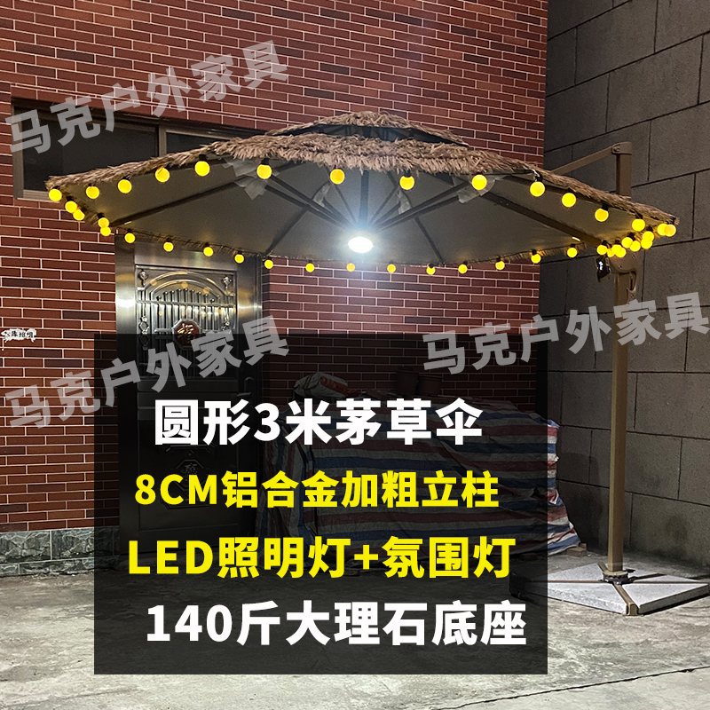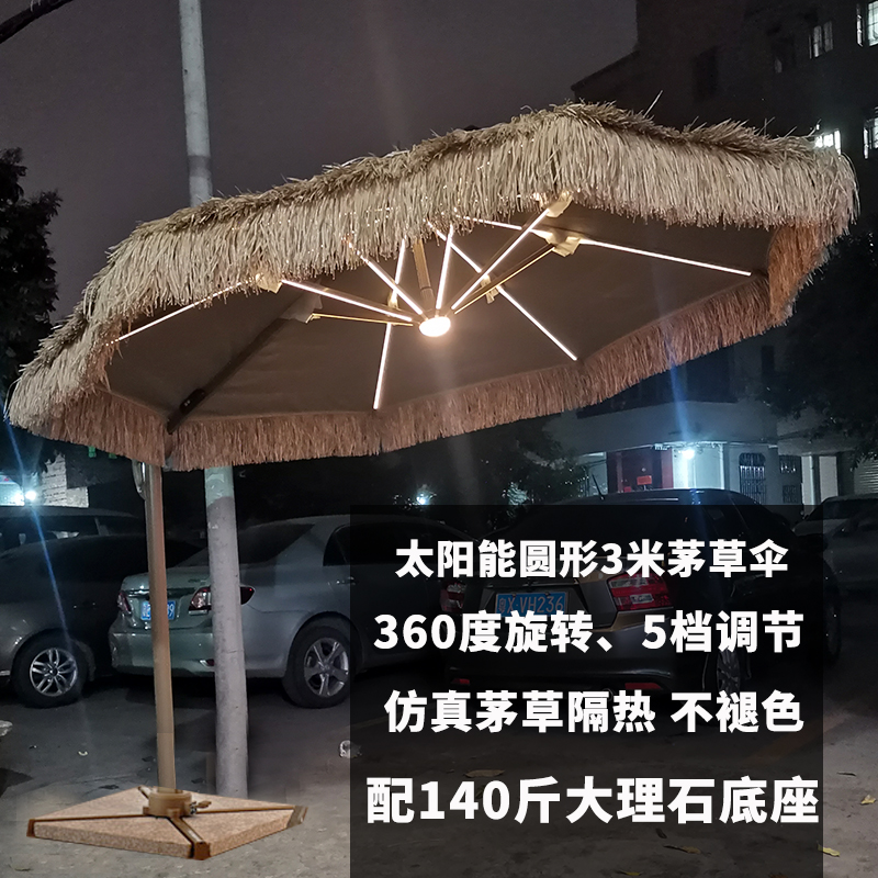 • 원형 3m 초가우산(주변광+충전조명) + 70kg 대리석 베이스 [조명포함(태양광, 플러그, USB, 3가지 중 1가지 선택)]