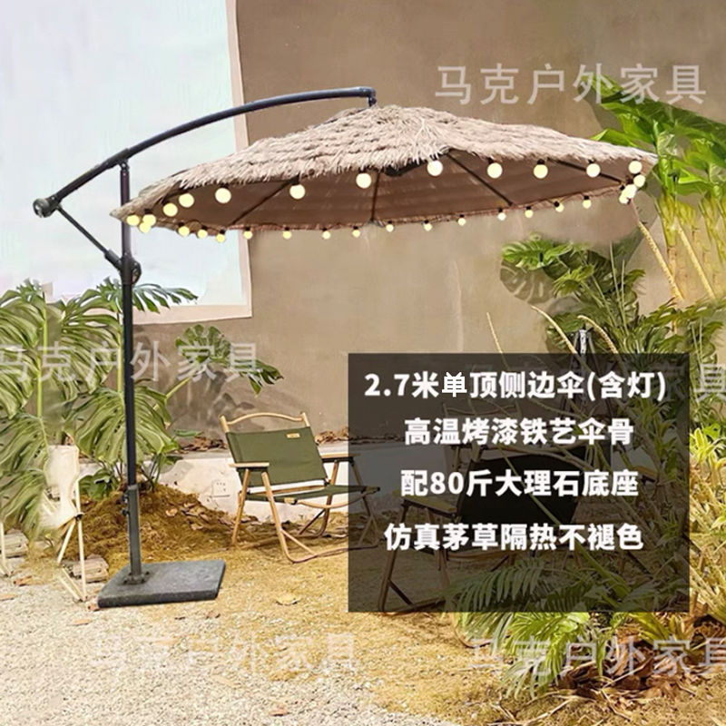 • 볼드 2.7m 초가우산(주변광+충전조명) + 40kg 대리석 베이스 [조명포함(태양광, 플러그, USB, 3가지 중 하나 선택)]