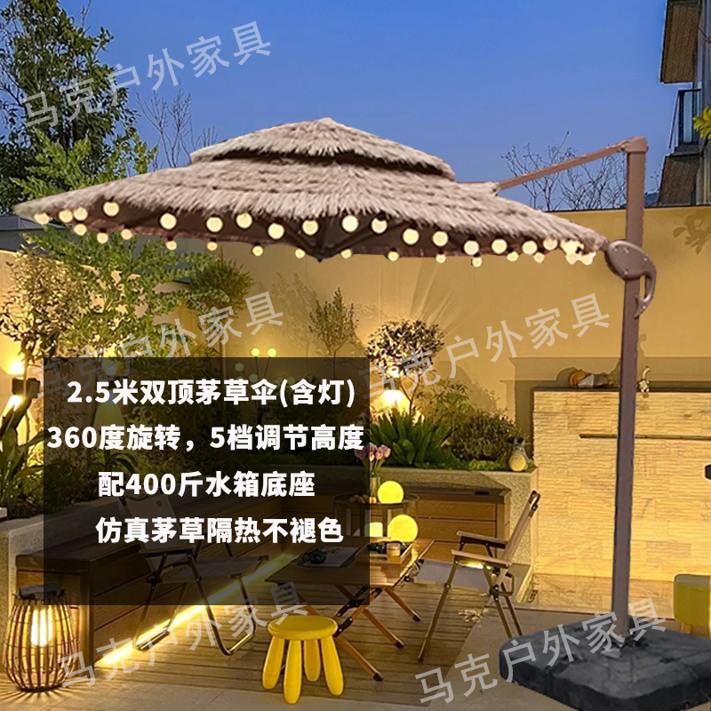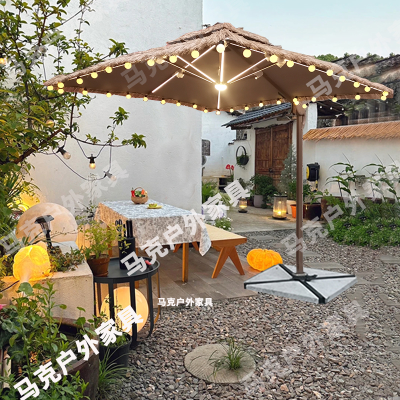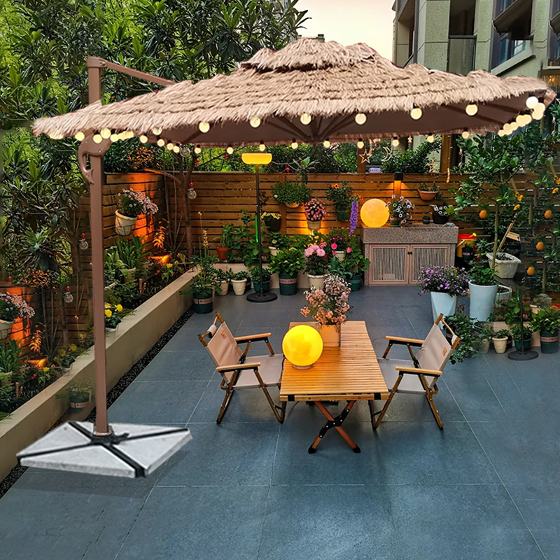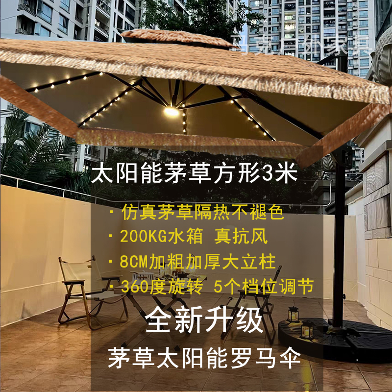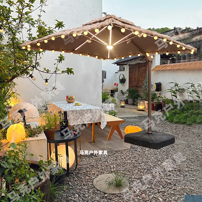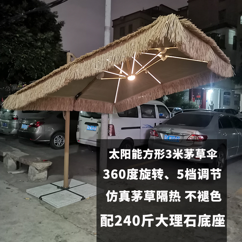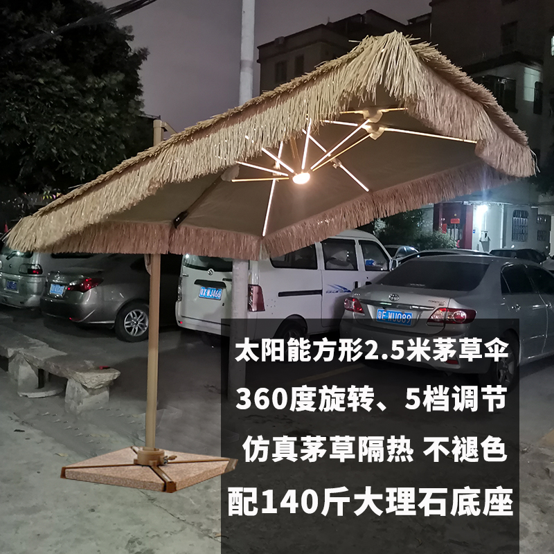 • 정사각형 2.5x 2.5m 초가우산(대기등) + 70kg 대리석 베이스 [조명 포함(태양광, 플러그, USB, 3가지 중 하나 선택)]