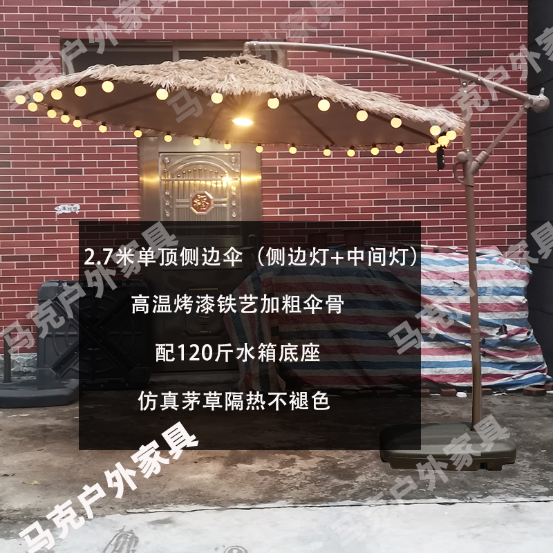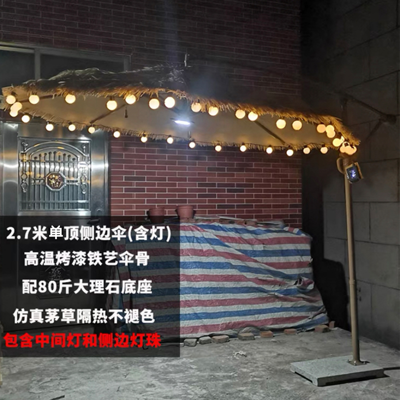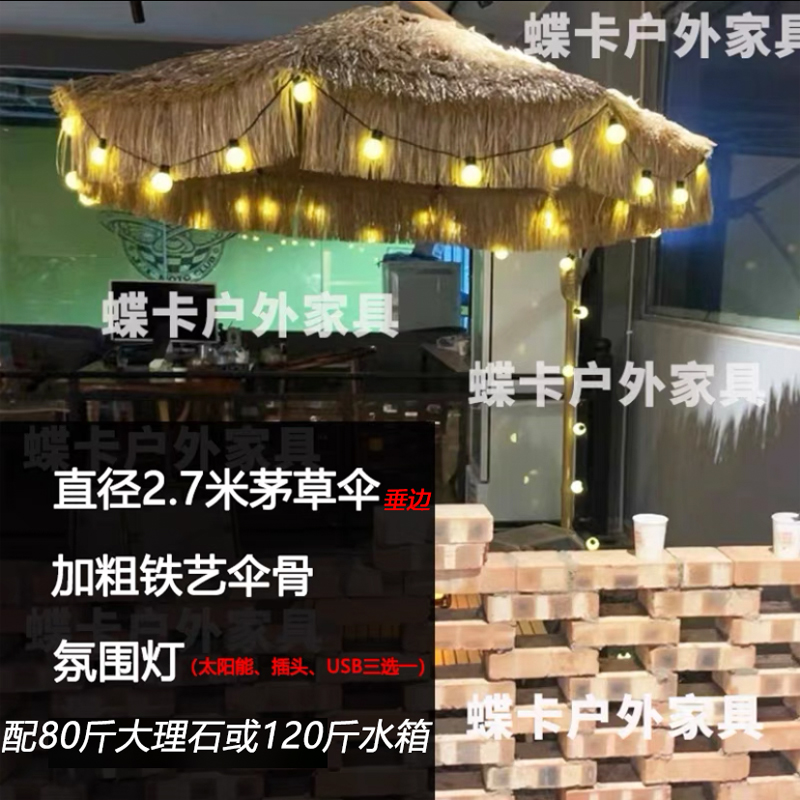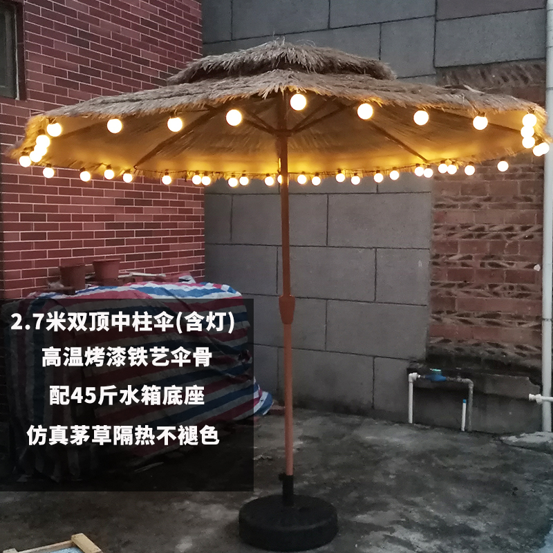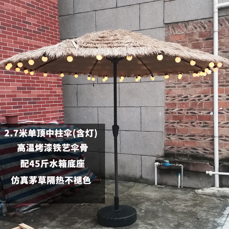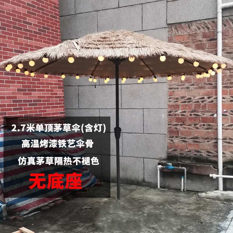 • [기간 한정 특가] (베이스 없음) 철제 우산 갈비뼈가 있는 중간 기둥 초가 우산 2.7m개 [조명 포함(플러그, USB, 둘 중 하나 선택)]