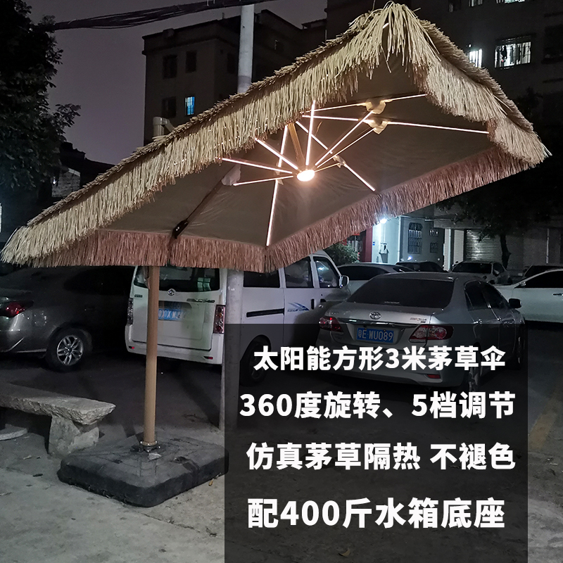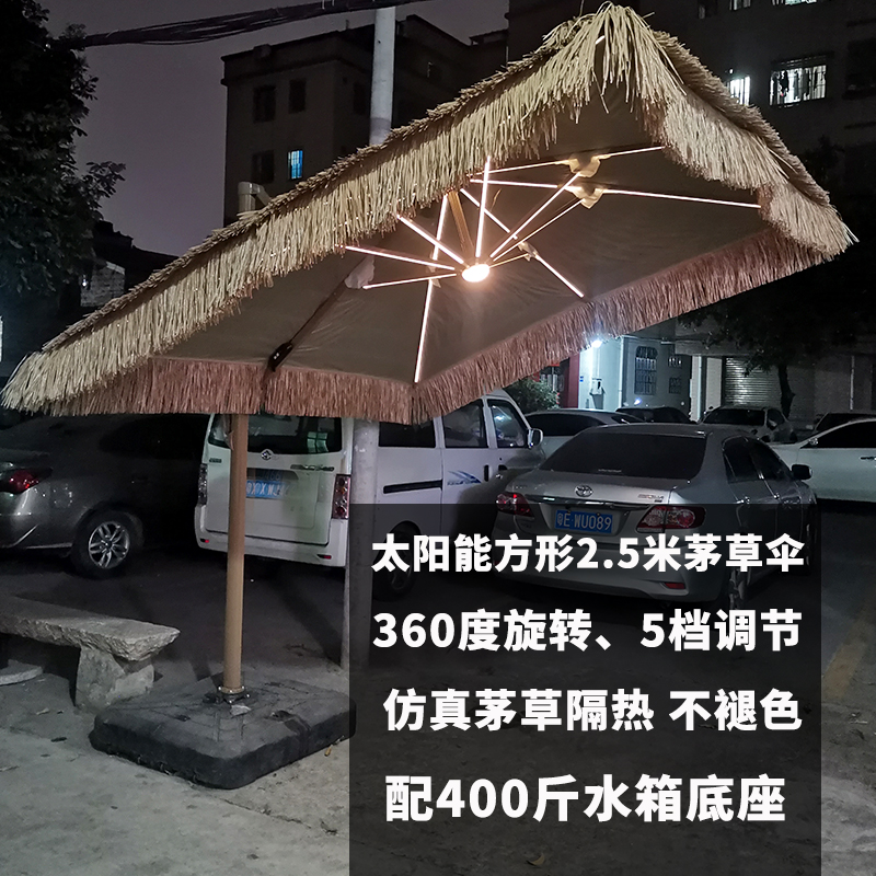 • 정사각형 2.5x 2.5m 초가우산(대기등) + 물탱크 베이스 200kg개 [조명 포함(태양광, 플러그, USB, 3가지 중 하나 선택)]