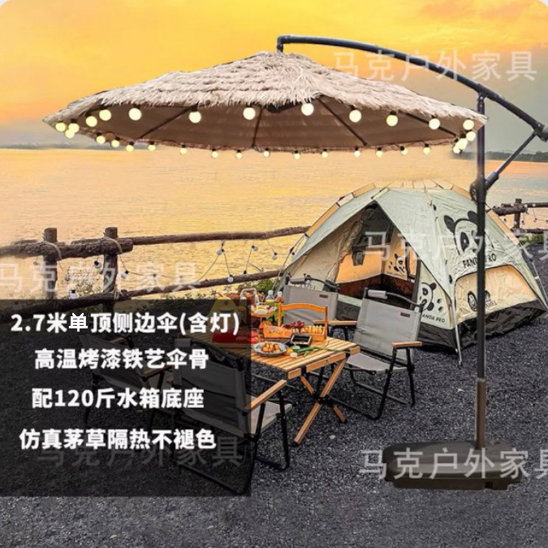 • 굵은茅葺기우산(대기등) 2.7m개 + 물탱크 베이스 60kg개 [조명 포함(태양광, 플러그, USB, 3가지 중 하나 선택)]