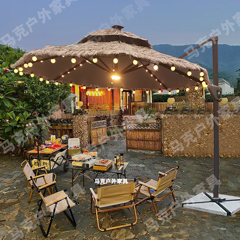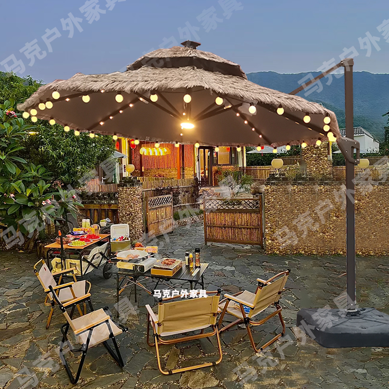 • 굵은茅葺우산(주변광+충전조명) + 물탱크 베이스 60kg개[조명 포함(태양광, 플러그, USB, 3가지 중 하나 선택)]