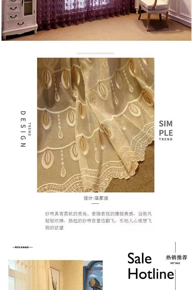 새로운 스타일의 창문 거즈 커튼, 보루 창 커튼, 특별 할인, 칸막이, 자수, 투광, 목가적 인 인터넷 연예인 거즈, 통기성스토어 가기