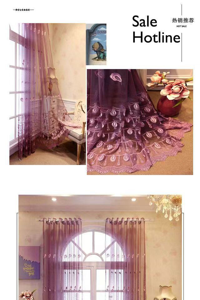 새로운 스타일의 창문 거즈 커튼, 보루 창 커튼, 특별 할인, 칸막이, 자수, 투광, 목가적 인 인터넷 연예인 거즈, 통기성