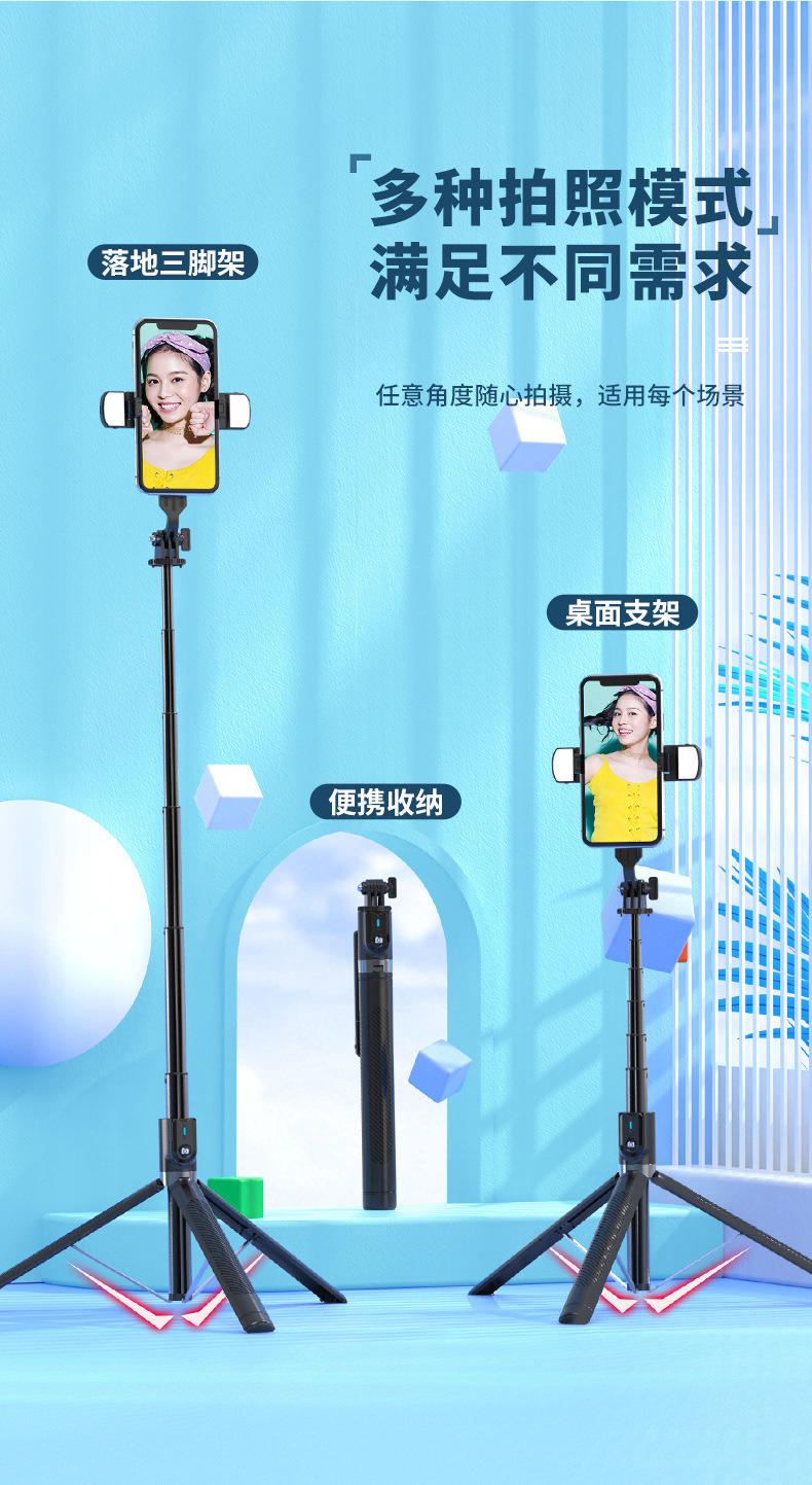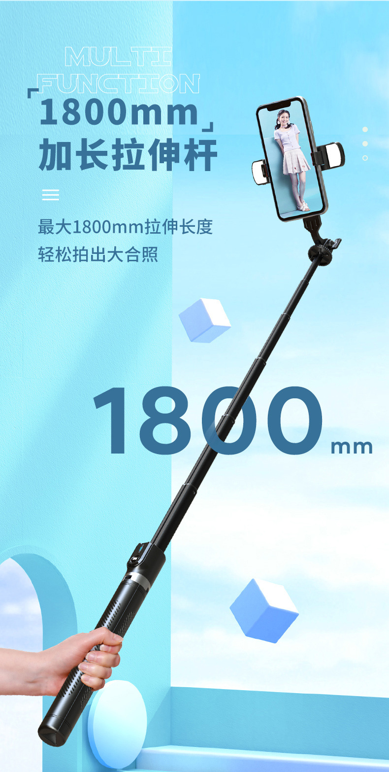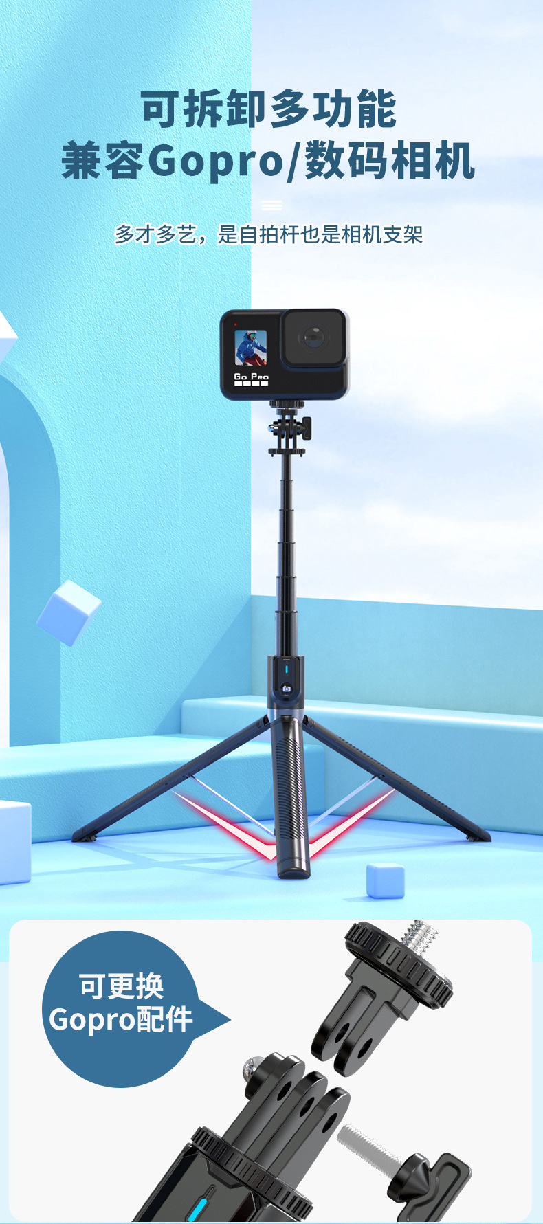 可充电蓝牙遥控铝合金三脚架自拍杆1.77米直播拍照落地手机自拍杆