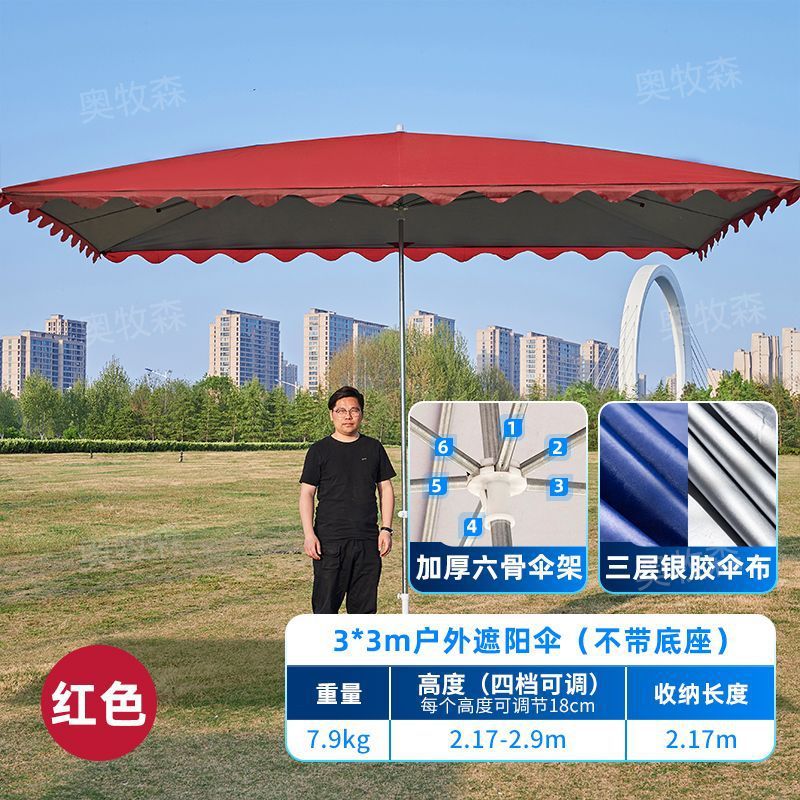 • 두꺼운 일반 우산 빨간색 3m 길이 3 너비 미터 6 갈비뼈