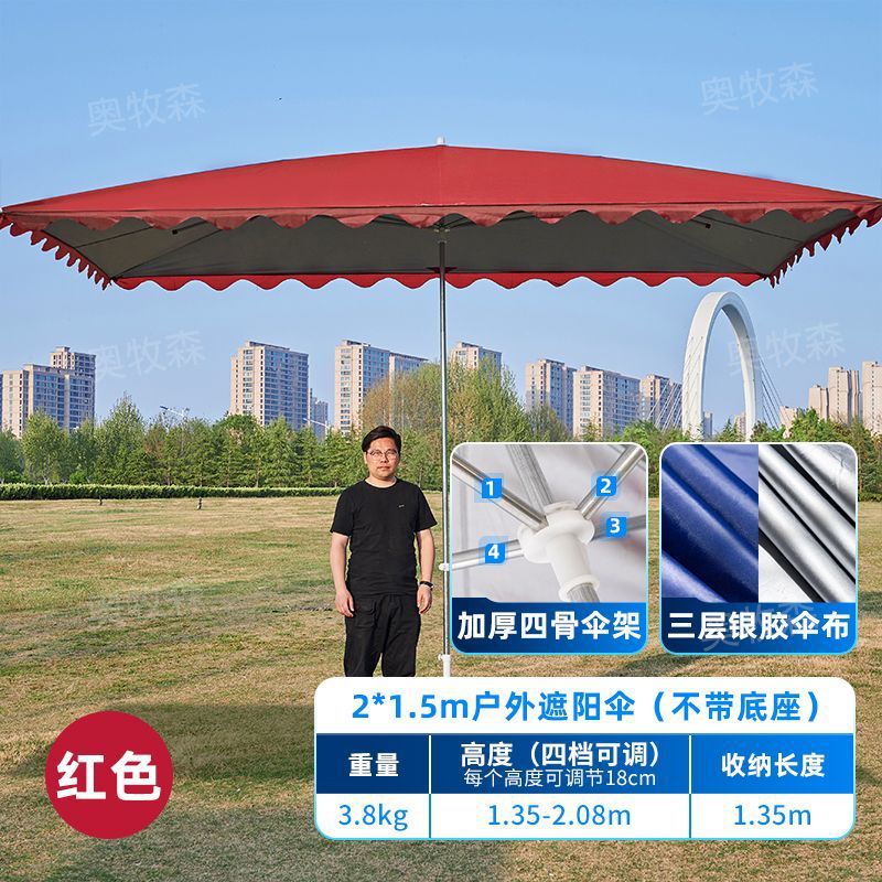 • 두꺼운 일반 우산 빨간색 2m 길이 1.5m 너비 4 갈비뼈