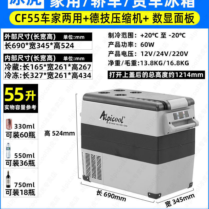 • 55리터 가정용 및 차량용 겸용 + 냉장 및 냉동 파티션 디지털 디스플레이