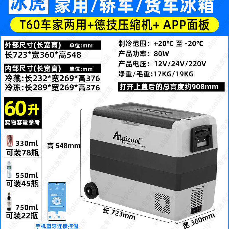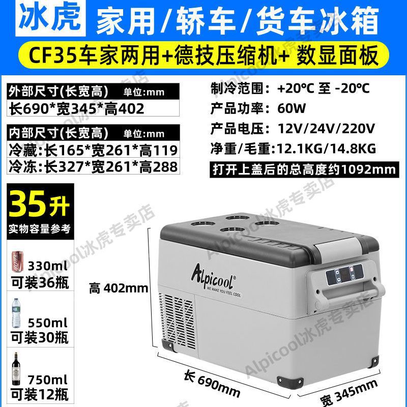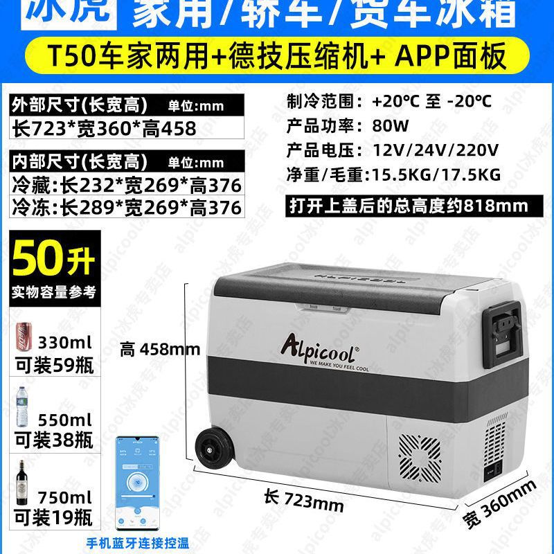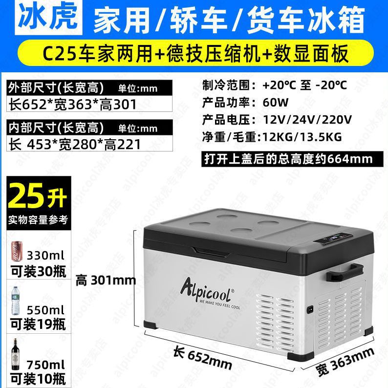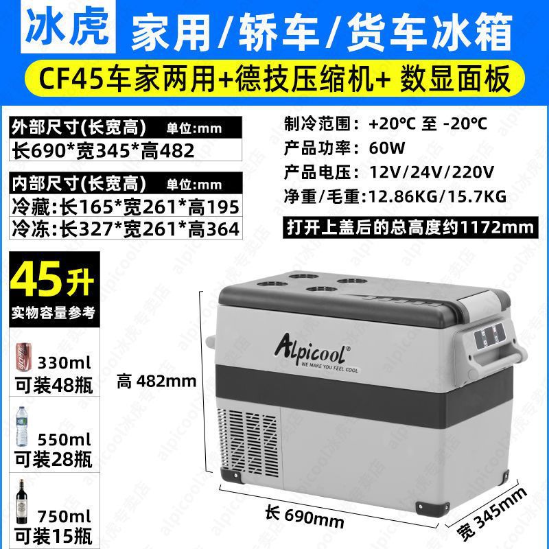 Ice Tiger 자동차 12V24V 냉장 및 냉동 소형 냉장고 휴대용 트럭 냉동고 압축기 냉동 자동차 가정용 이중 용도스토어 가기