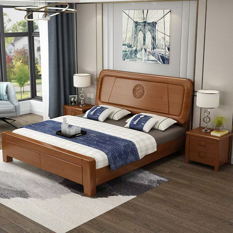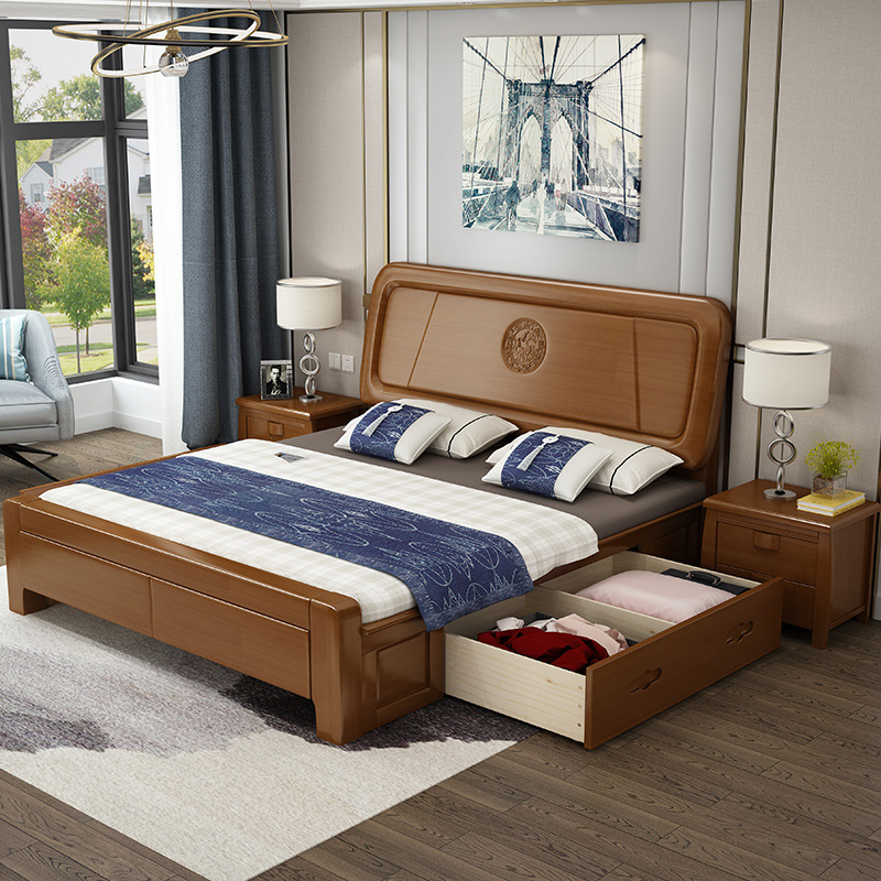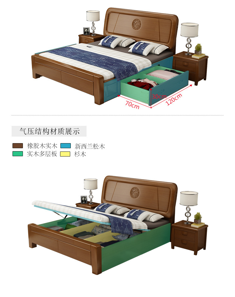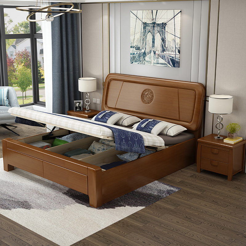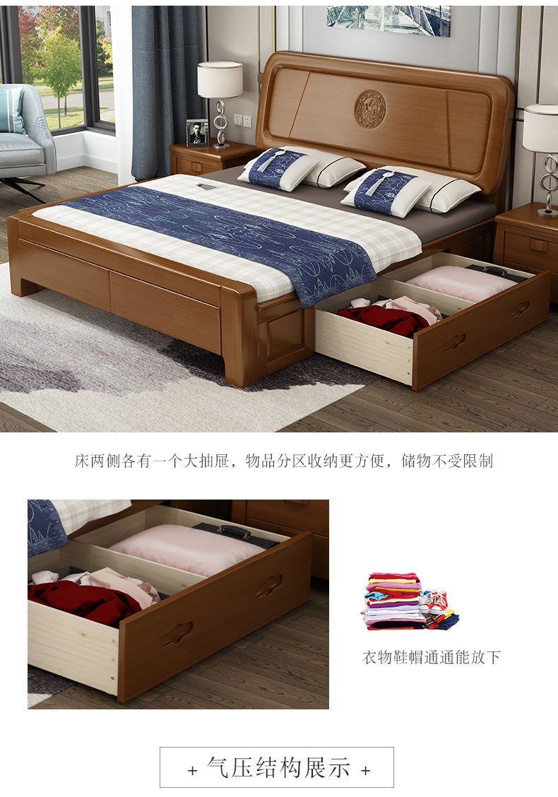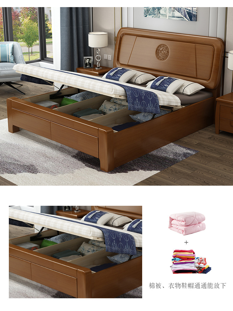 고무나무 원목 침대 1.8m 더블 침대 모던 심플 1.5m 싱글 마스터 침실 하이박스 공기압 수납 침대