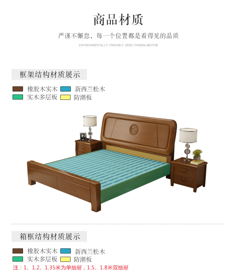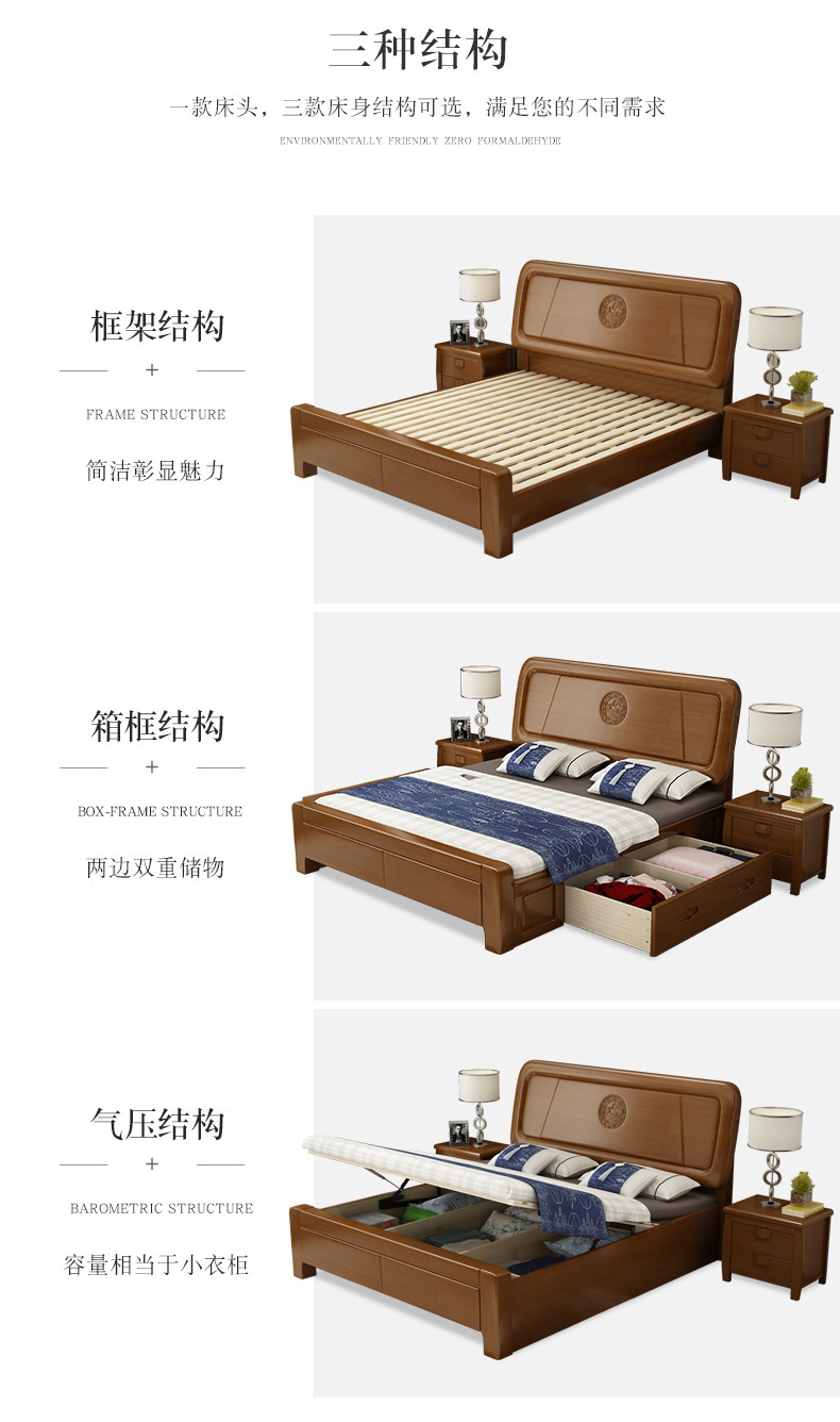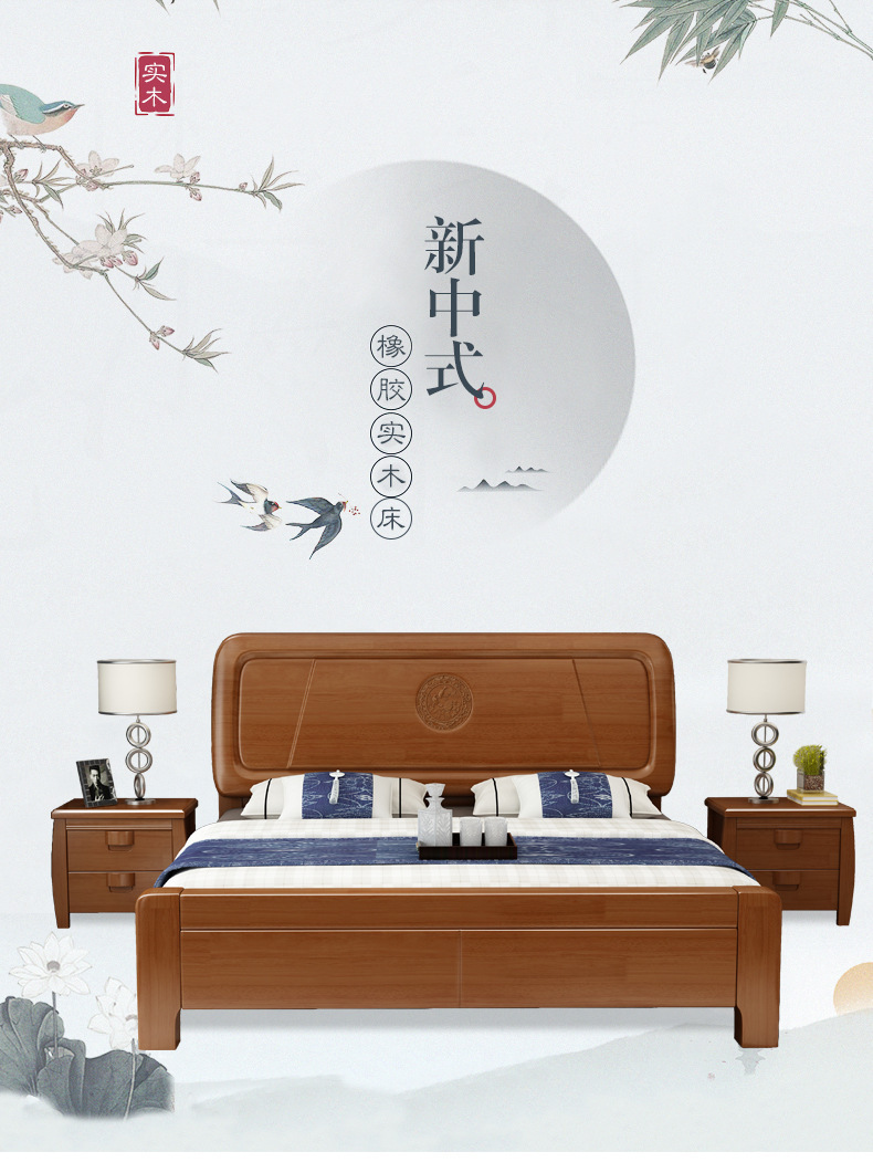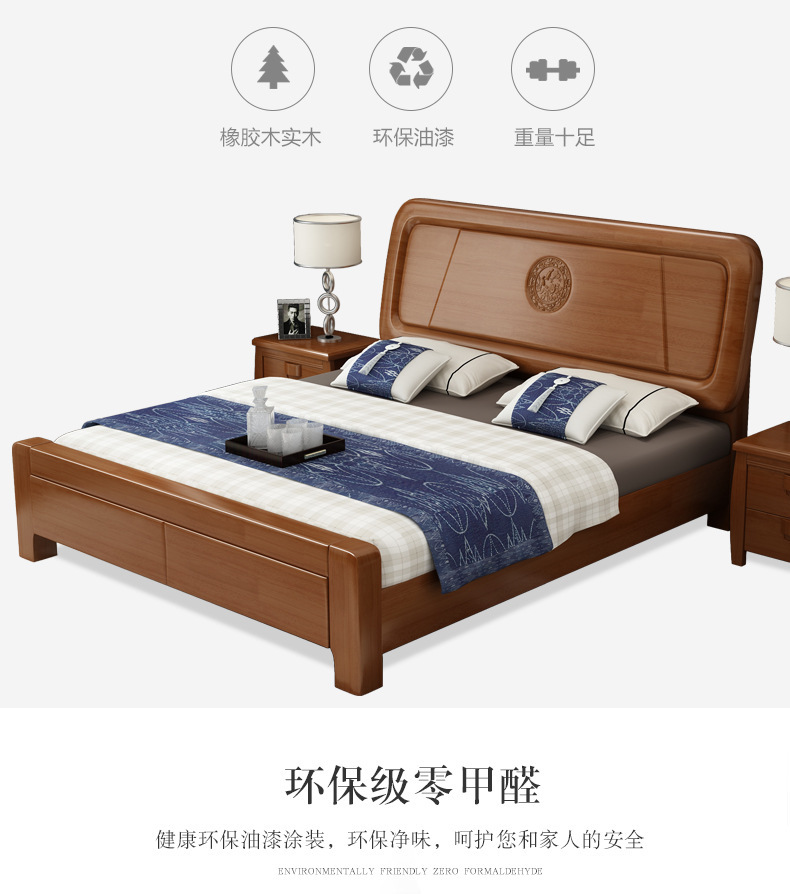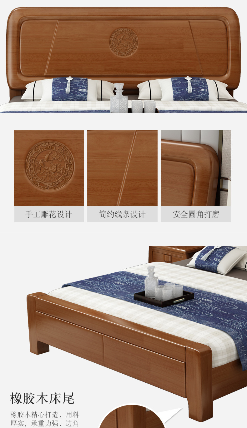 고무나무 원목 침대 1.8m 더블 침대 모던 심플 1.5m 싱글 마스터 침실 하이박스 공기압 수납 침대