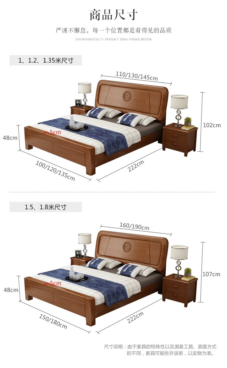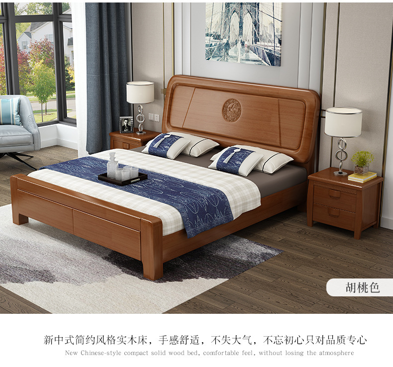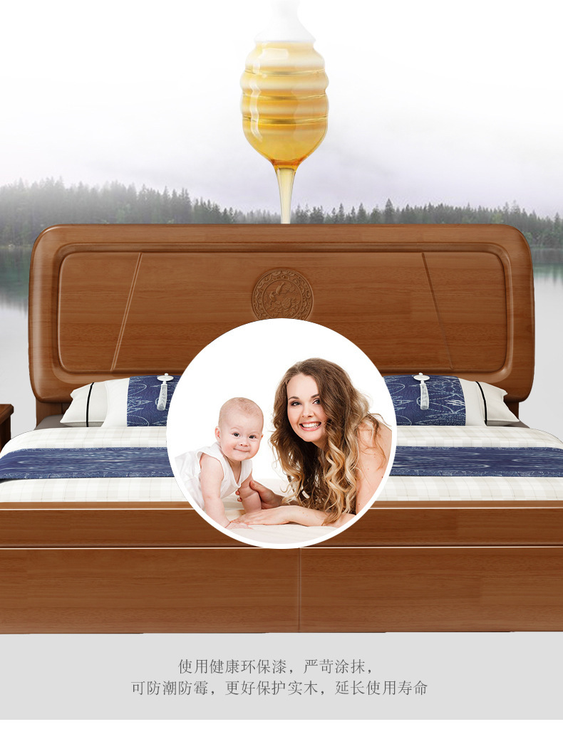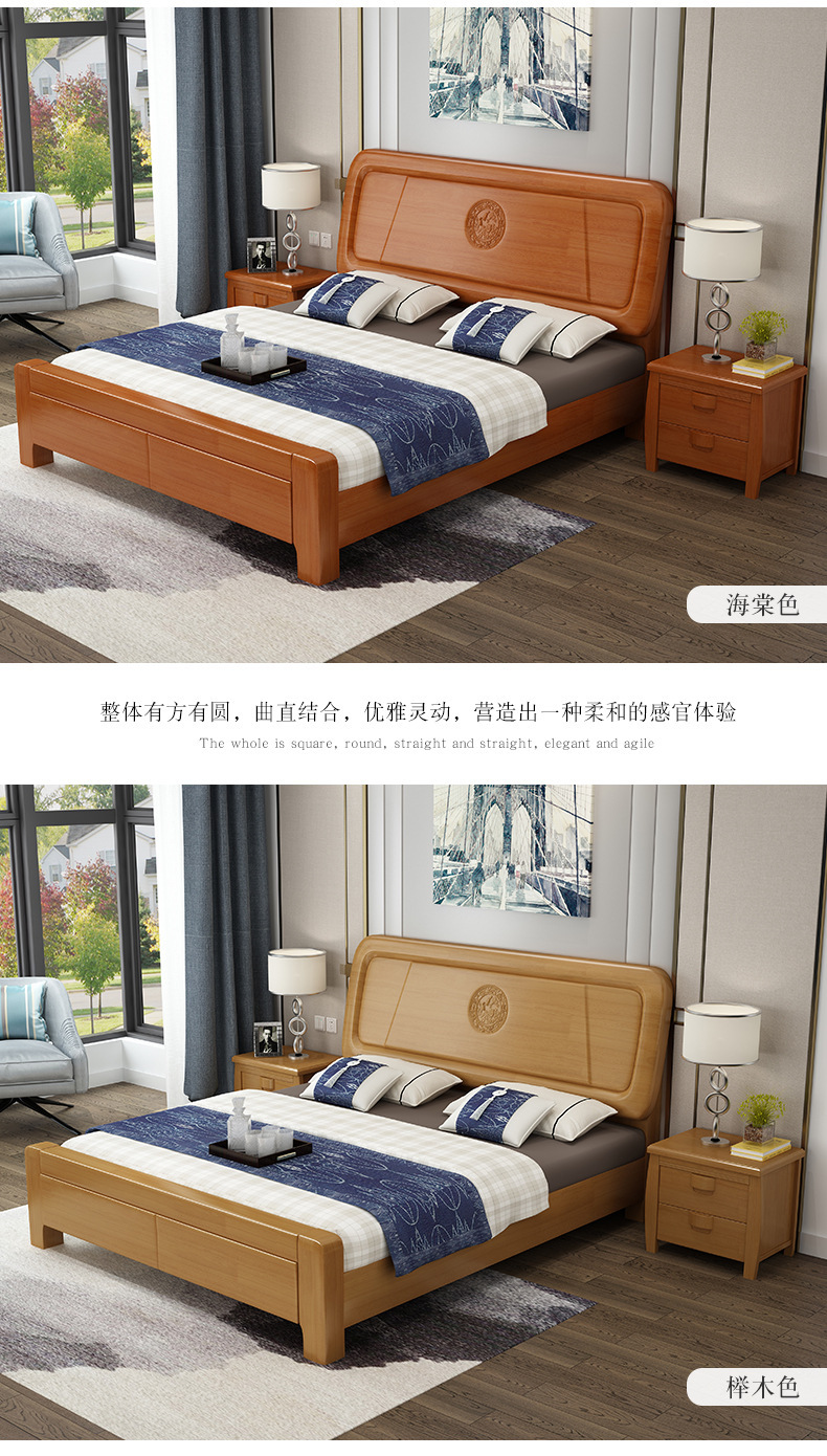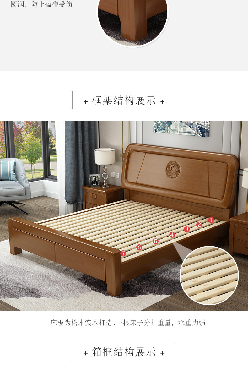 고무나무 원목 침대 1.8m 더블 침대 모던 심플 1.5m 싱글 마스터 침실 하이박스 공기압 수납 침대