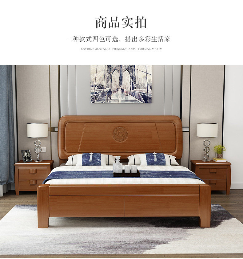 고무나무 원목 침대 1.8m 더블 침대 모던 심플 1.5m 싱글 마스터 침실 하이박스 공기압 수납 침대스토어 가기