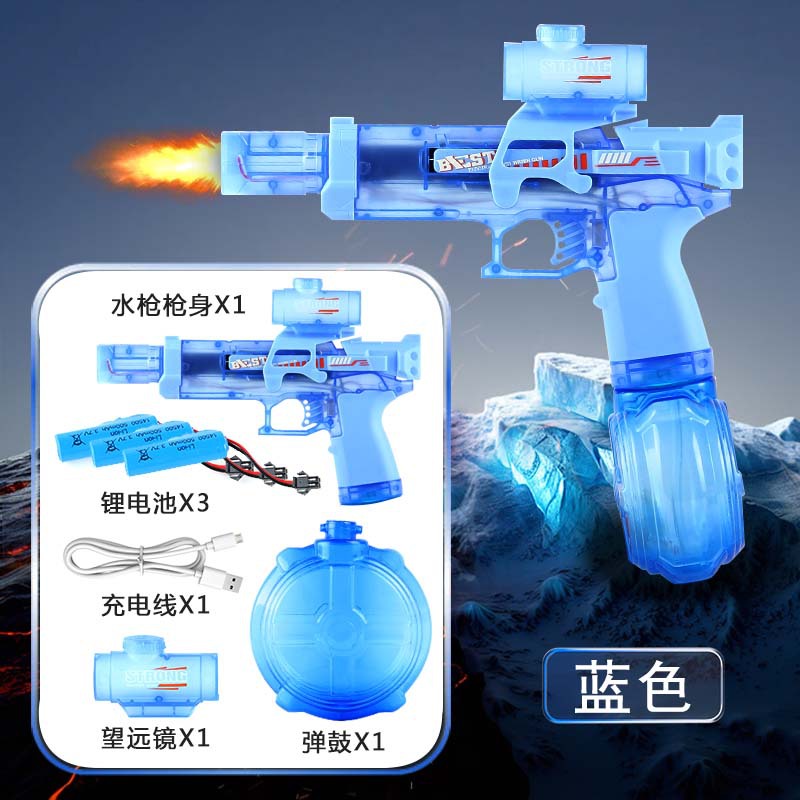 국경 간 불 uzi 전기 물총 장난감 대용량 재장전 연속 발사 플래시 아이스 마우스 어린이 완전 자동 물총스토어 가기