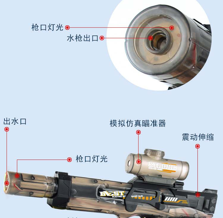 국경 간 불 uzi 전기 물총 장난감 대용량 재장전 연속 발사 플래시 아이스 마우스 어린이 완전 자동 물총