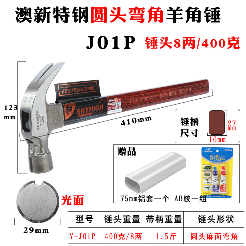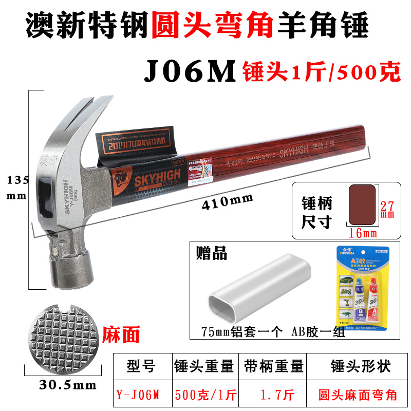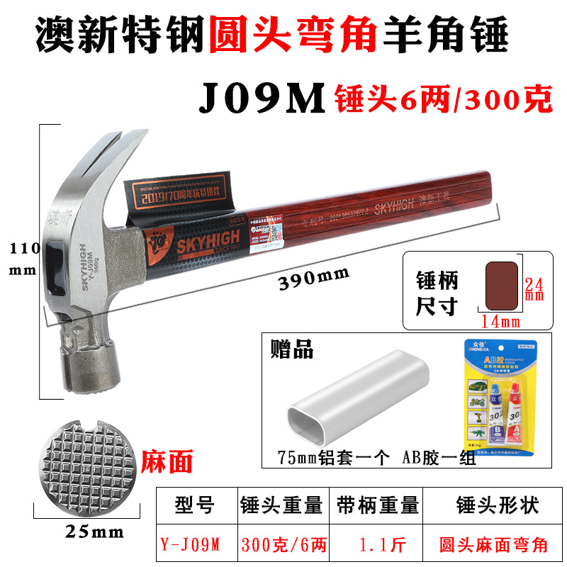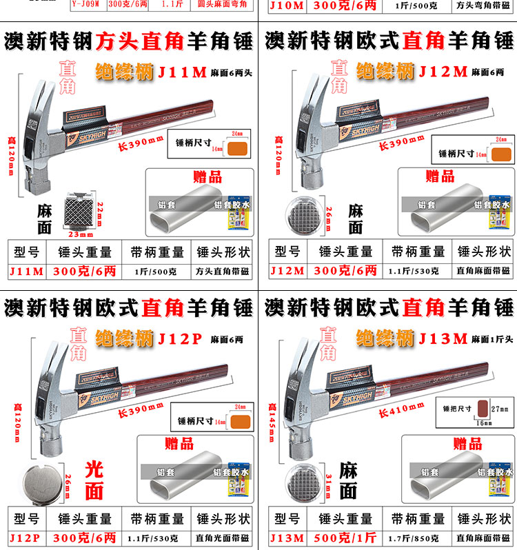 • 0.4kg 특수강 직각(사각형 헤드 및 움푹 들어간 표면) J03M에는 알루미늄 슬리브 및 BA 접착제가 함께 제공됩니다.