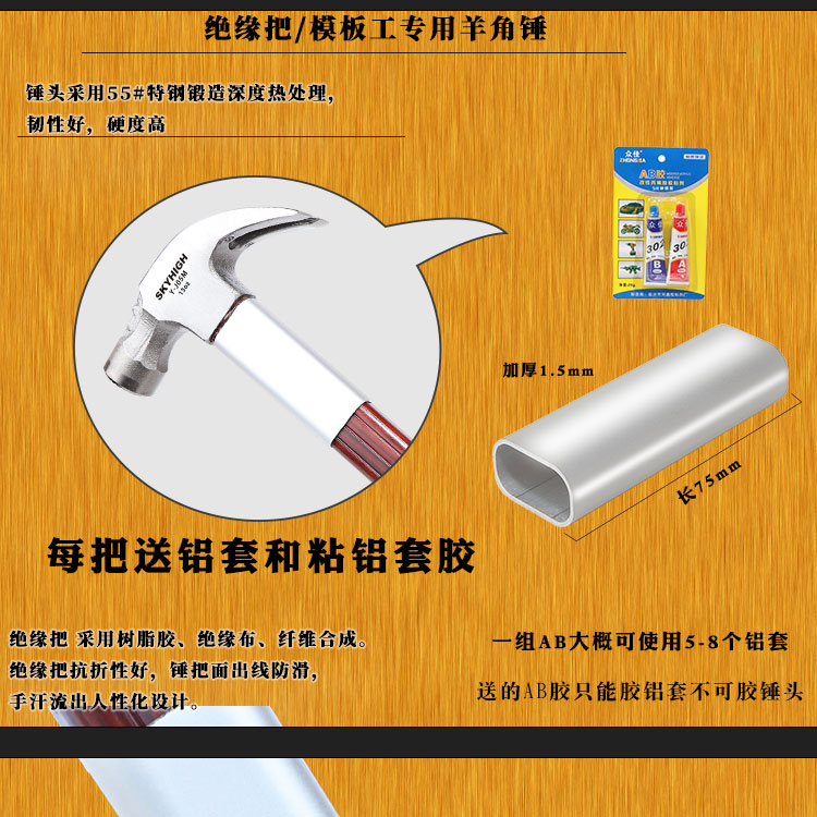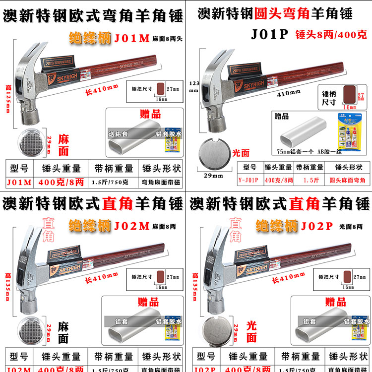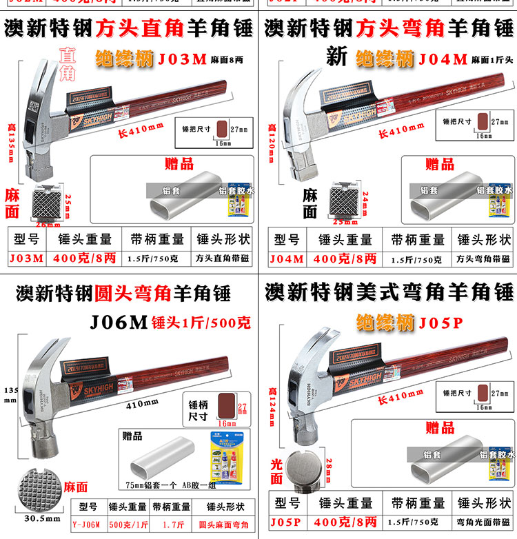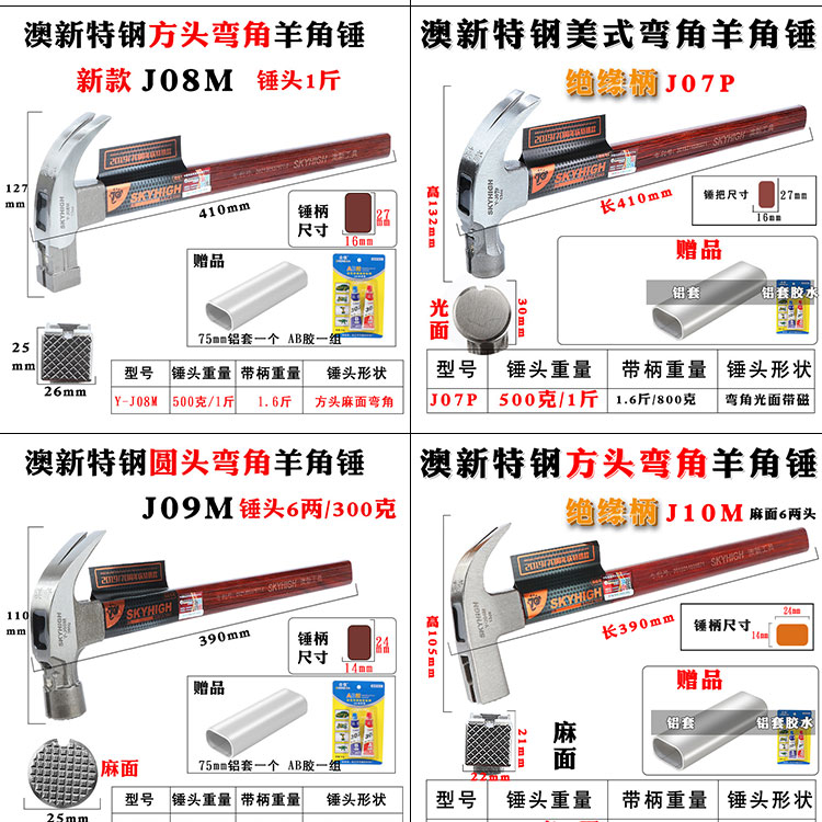 호주 및 뉴질랜드 특수 강철 클로 헤드 망치, 절연 손잡이 망치, 목공 네일 풀러, 네일 풀러, 건설 현장 템플러 망치, 반품 및 교환 가능스토어 가기
