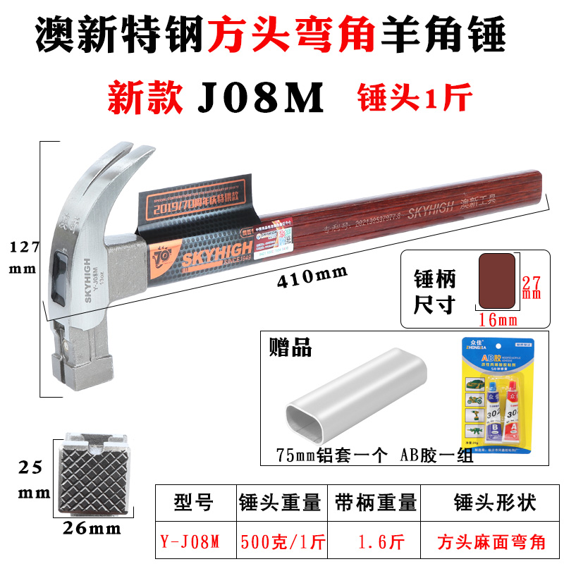 • 0.5kg 특수강 앵글(사각형 헤드 피트) 새로운 J08M에는 알루미늄 슬리브와 BA 접착제가 함께 제공됩니다.
