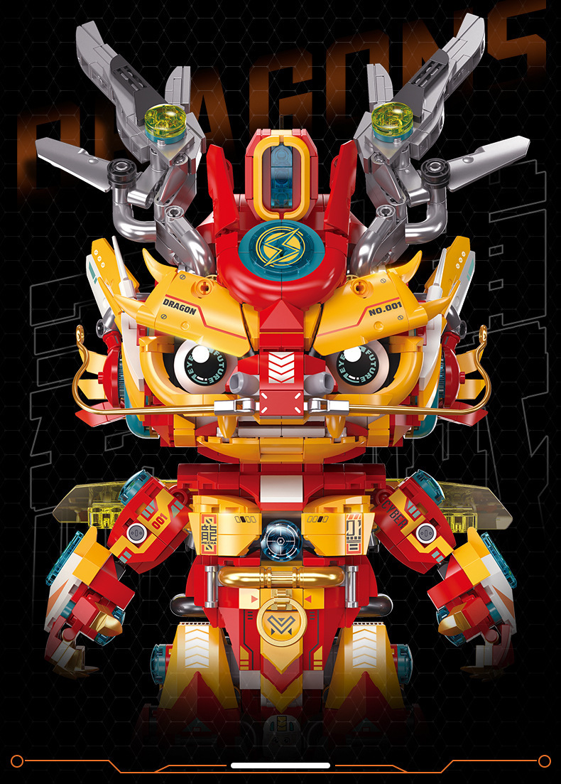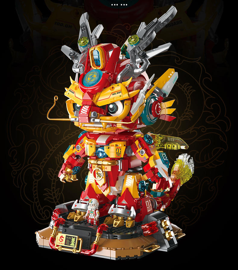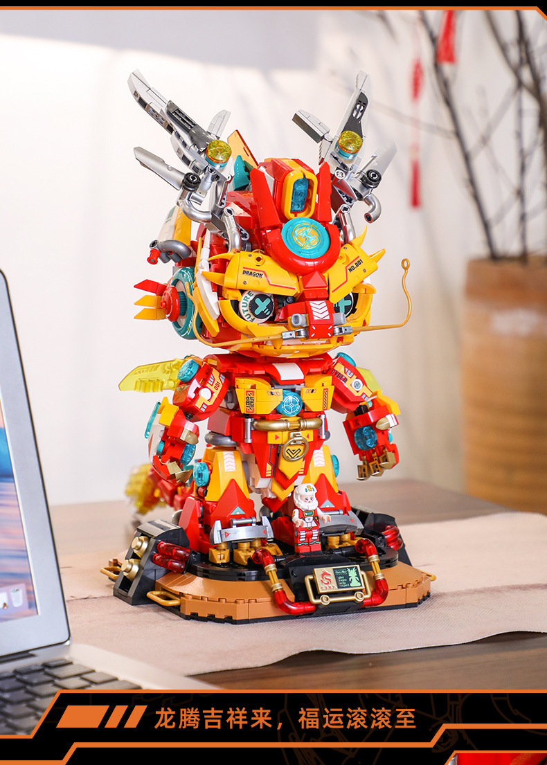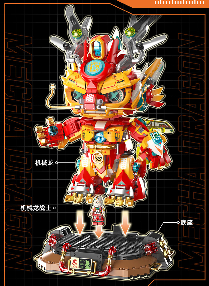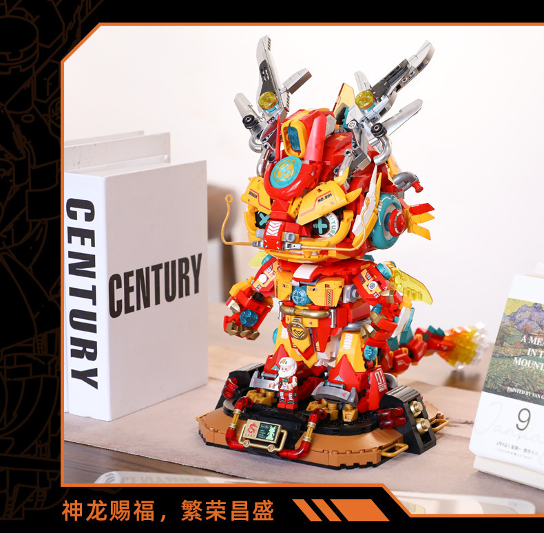 Fermi S34003 사이버 기계 드래곤 국가 트렌드 장식품 선물 모델 장난감 교육 조립 작은 입자 빌딩 블록