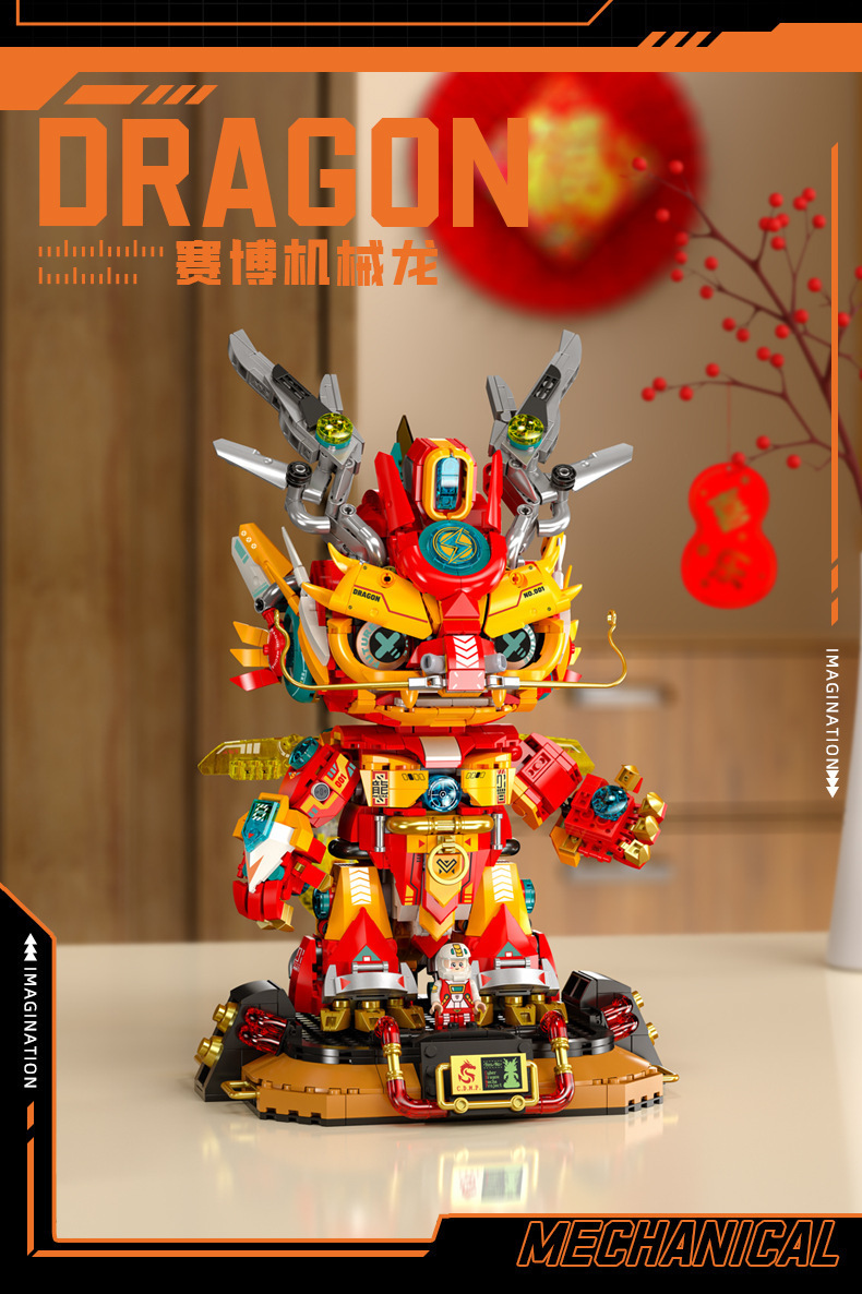 Fermi S34003 사이버 기계 드래곤 국가 트렌드 장식품 선물 모델 장난감 교육 조립 작은 입자 빌딩 블록스토어 가기