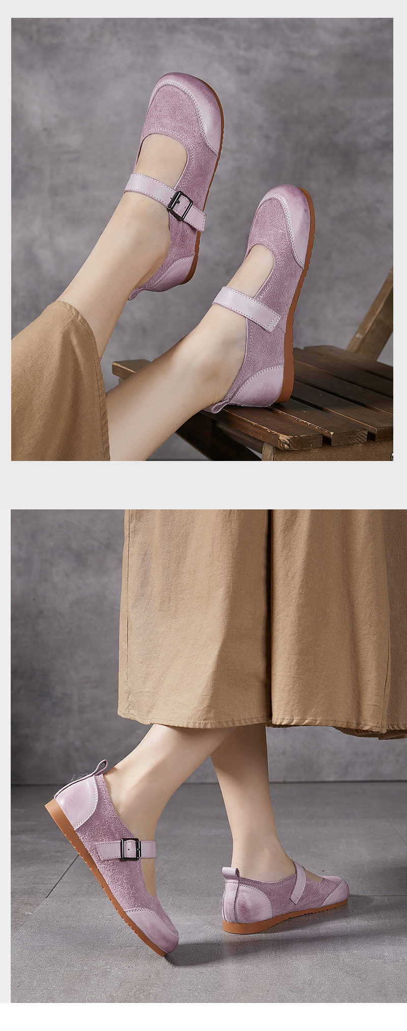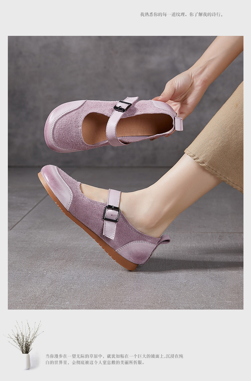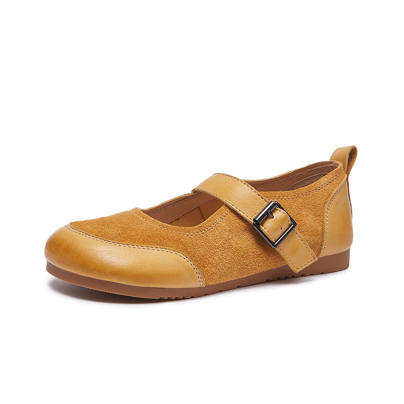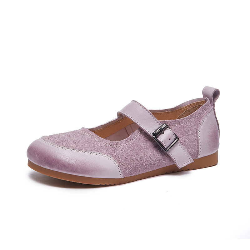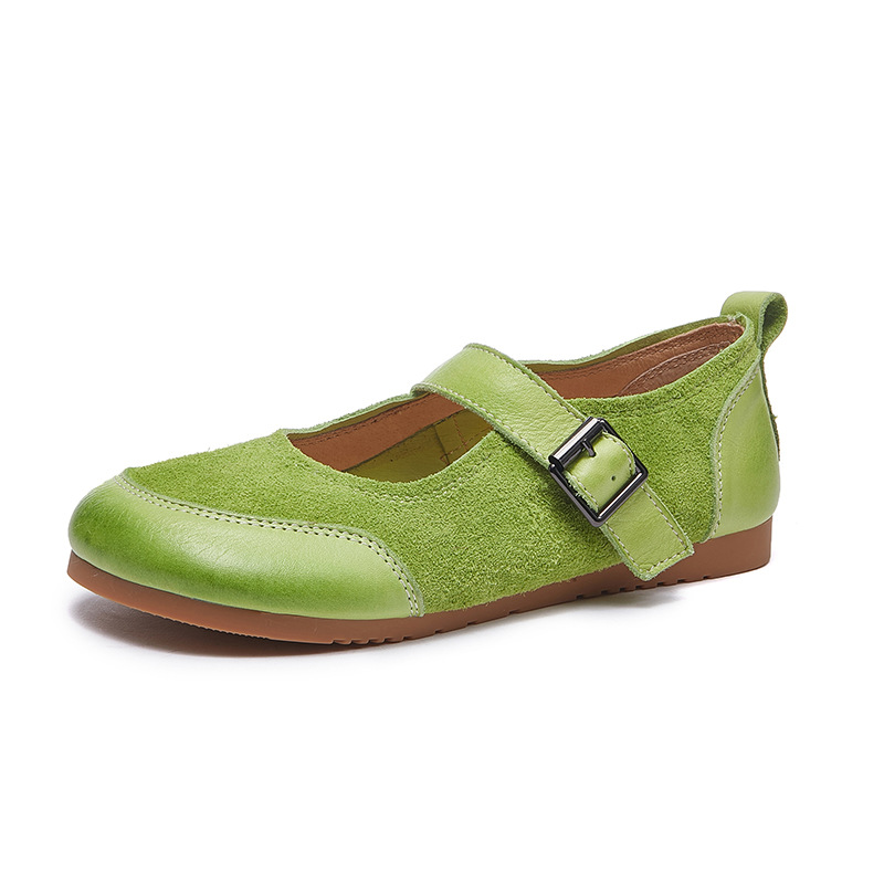 동관 신발 공장 정품 가죽 여성 싱글 신발 모리 스타일 부드러운 밑창 한국 스타일 패션 플랫 버클 컬러 매칭 메리 제인