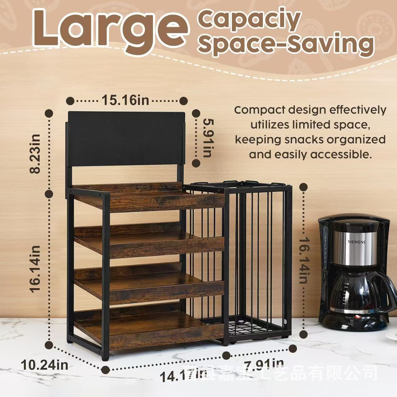 맞춤형 철제 및 목재 결합 수납 선반, 다층 주방 잔해물 수납 선반, 원목 거실 스낵 및 음료 수납 선반스토어 가기