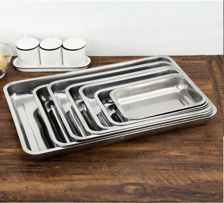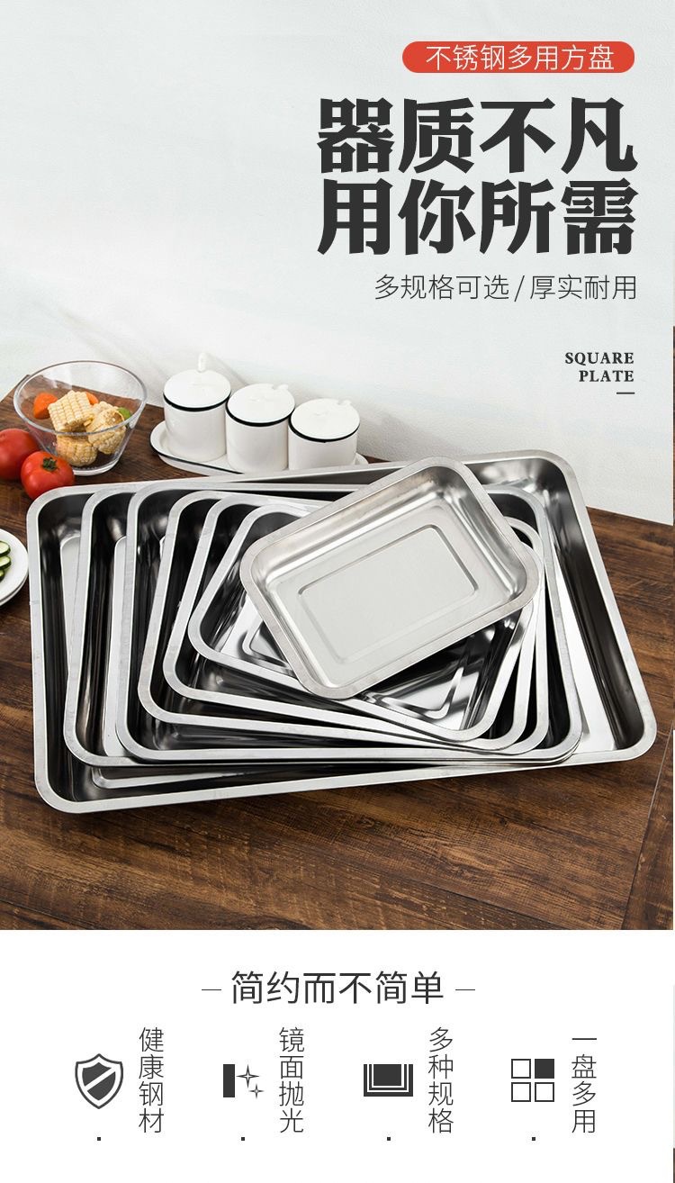 스테인레스 스틸 사각 접시 트레이 접시 접시 바베큐 접시 밥 접시 철 접시 직사각형 Ejiao 접시 상업용 스톨 접시스토어 가기