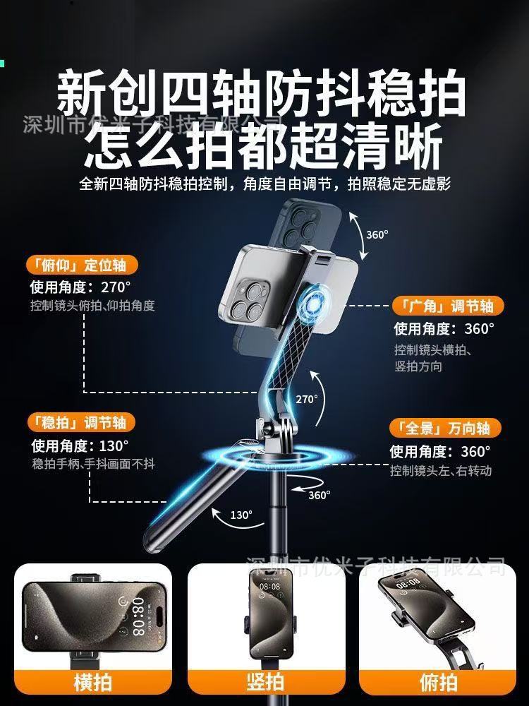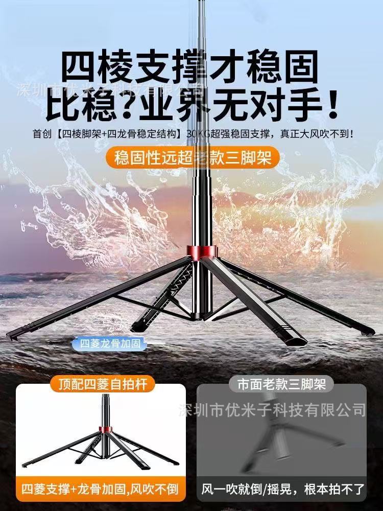 새로운 4축 휴대폰 셀카봉, 라이브 여행 사진 촬영, 바닥에서 천장까지 접이식 오버헤드 촬영 올인원 셀카봉